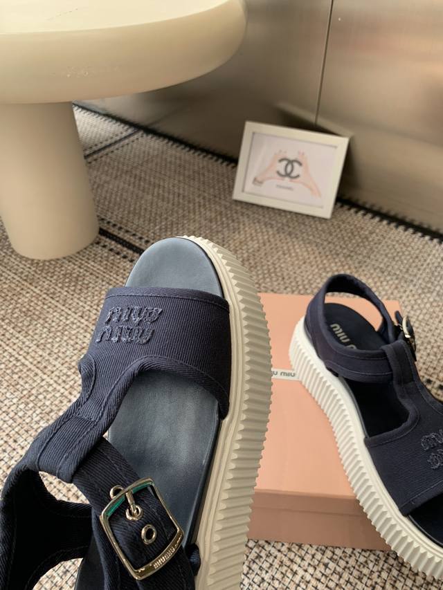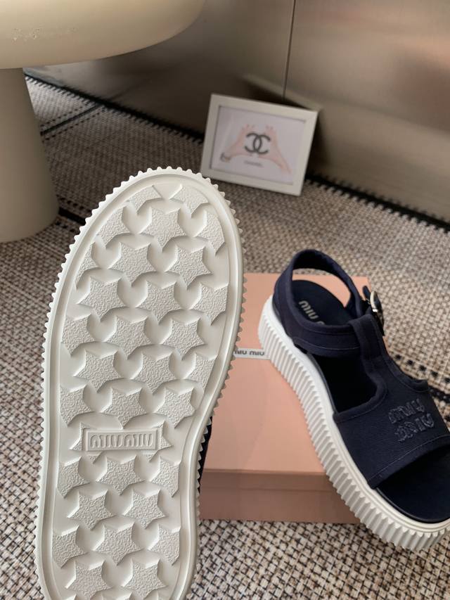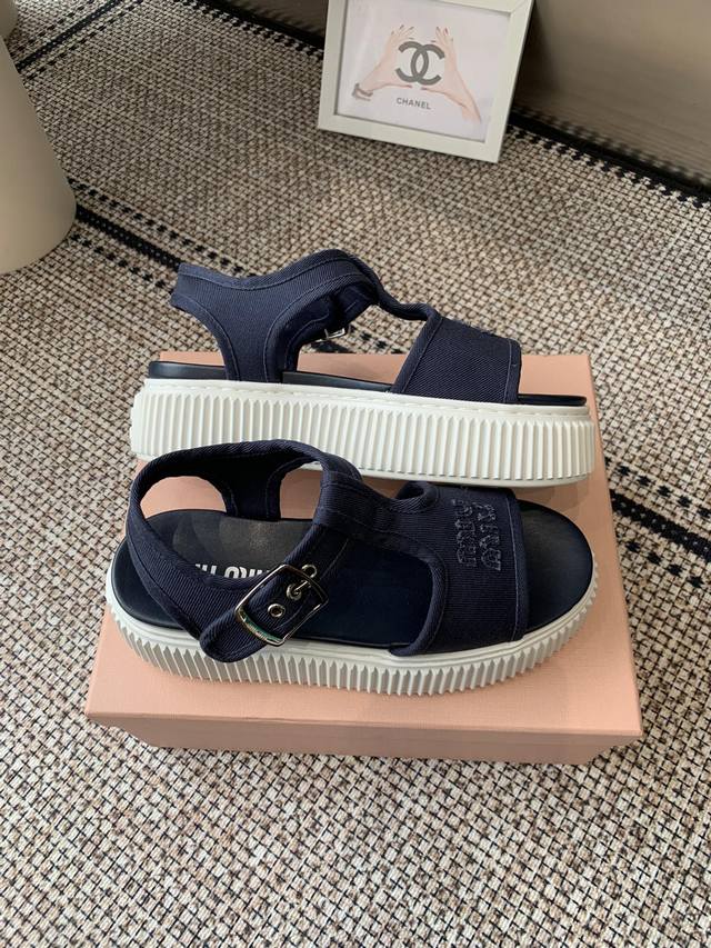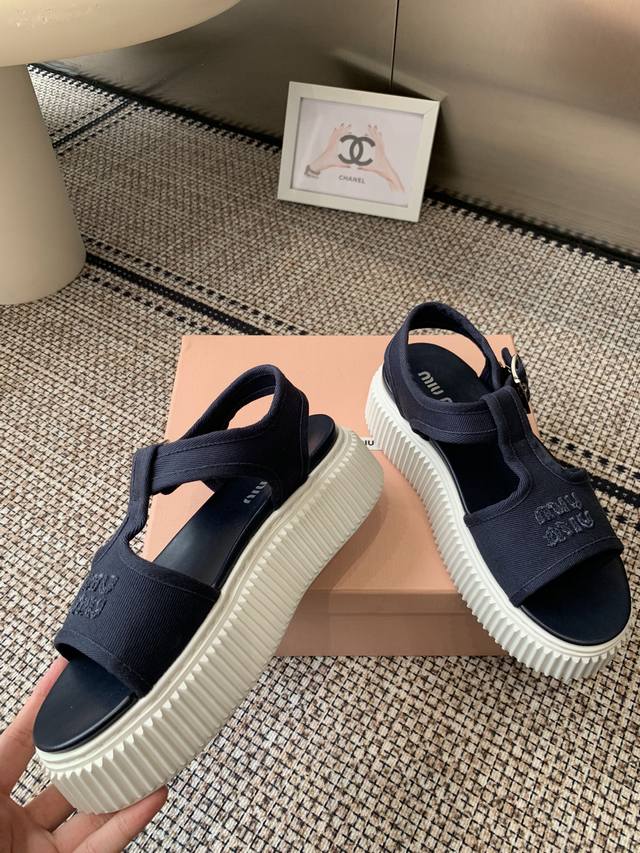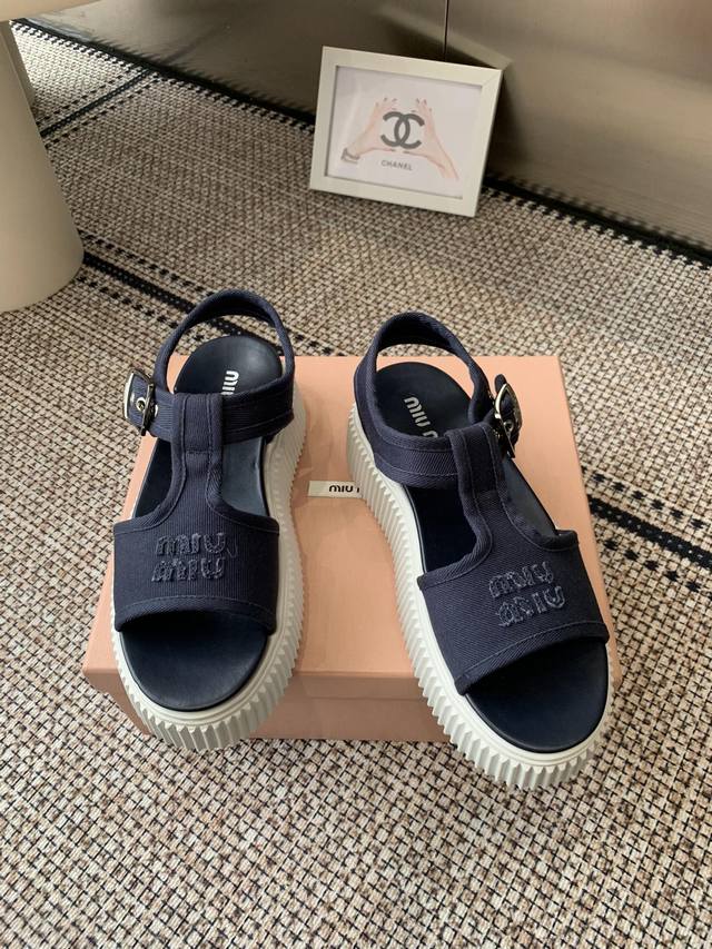 Miumiu Spring/Summer New Arrival Runway Biscuit Sandals, Platform Shoes. These simple athletic sneakers feature a highly recognizable tongue, creating a relaxed and sweet casual style. They exude confidence and can be easily paired with long skirts, short skirts, or shorts to create a unique look. High-density canvas upper, cowhide insole, Ip foam lining, 4.5cm outsole height. Sizes: 35, 40, 40 (custom sizes available).