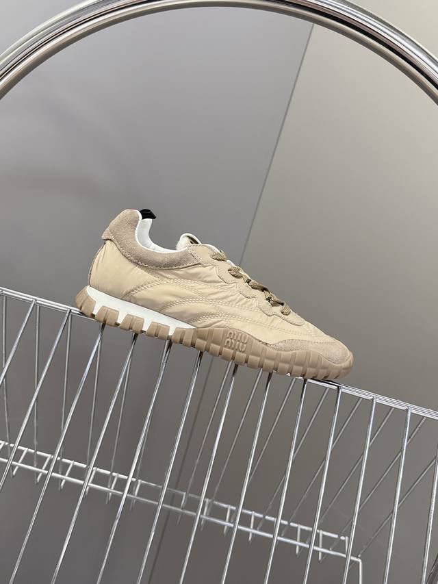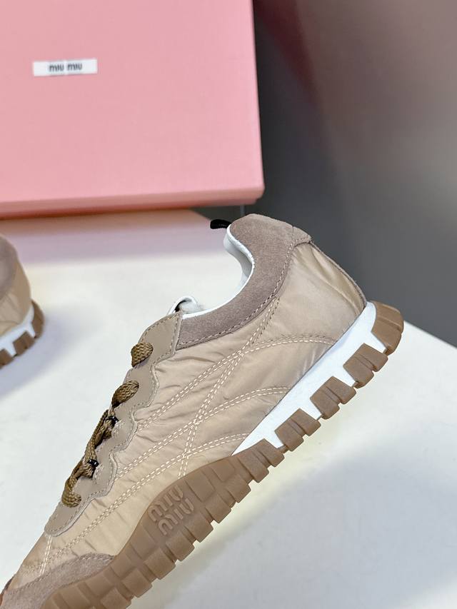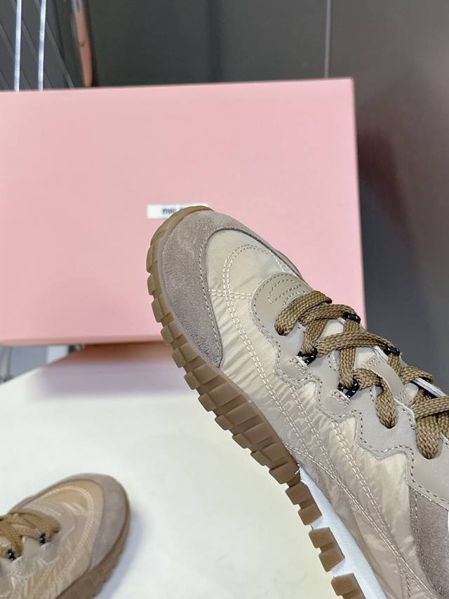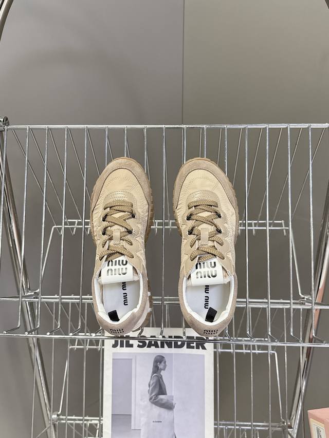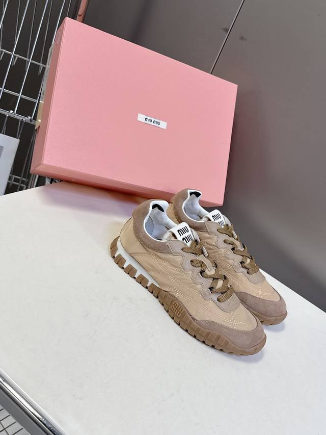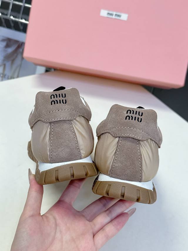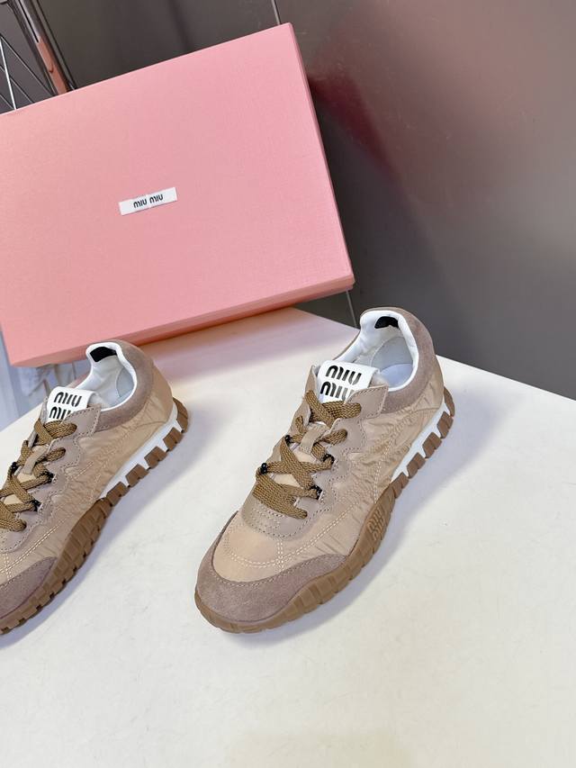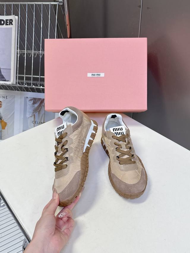Miumiu Spring/Summer runway-inspired biscuit shoes, Forrest Gump shoes, and casual sneakers. Available at the counter for RMB 11,610. Miumiu's latest hit, bold and avant-garde, features Miu Miu style infused into the clean lines of these thick-soled canvas sneakers. Distinctive logos adorn the tongue and back, adding a touch of retro flair and a signature touch. The thick-soled design defines avant-garde modern style. Fabric: Original custom cow suede. Lining: Original imported soft lambswool. Sole: Original molded, non-slip rubber outsole. Size: 35-40. Custom sizes are non-refundable.