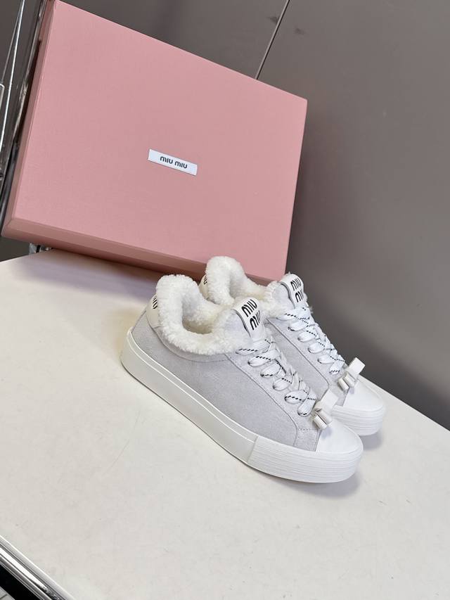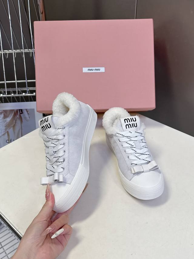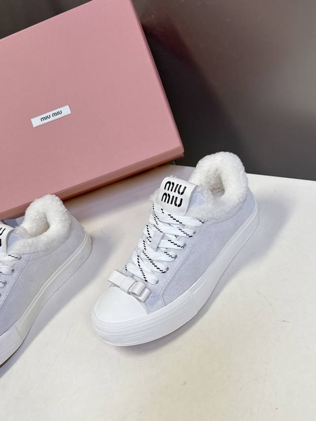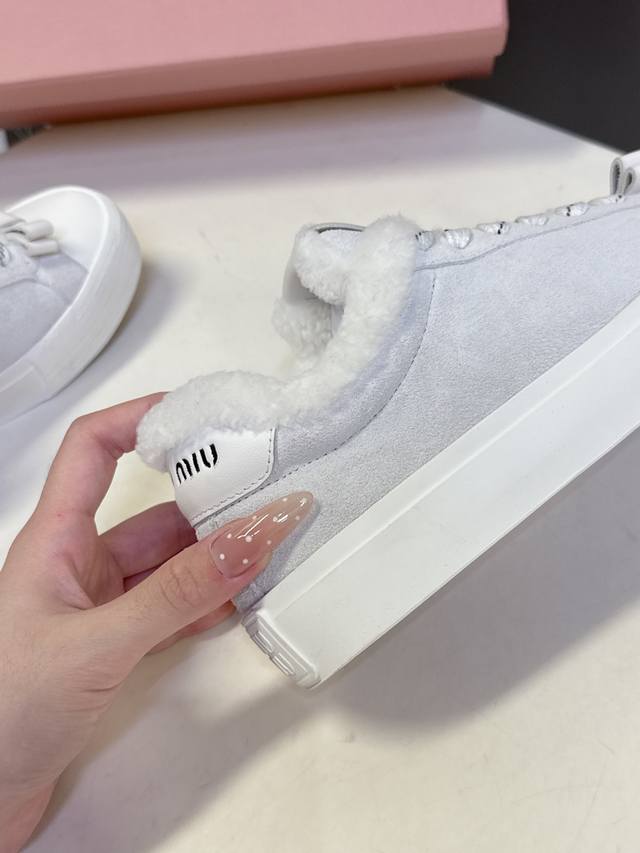 Miumiu's latest American retro style~ These incredibly popular double-lace furry shoes are a must-have! A distressed and stylish design, they're simple, sophisticated, and incredibly comfortable to wear with any style. A must-have for the year!