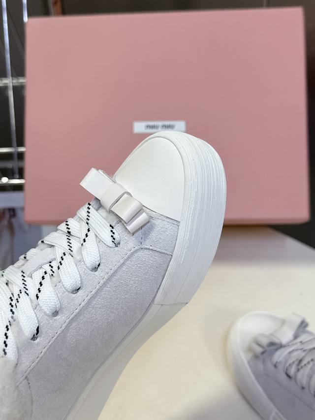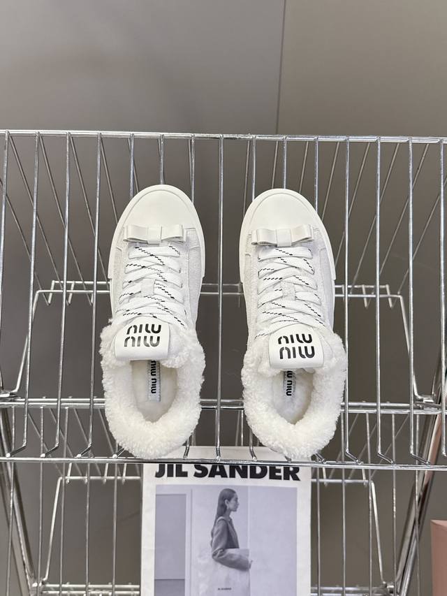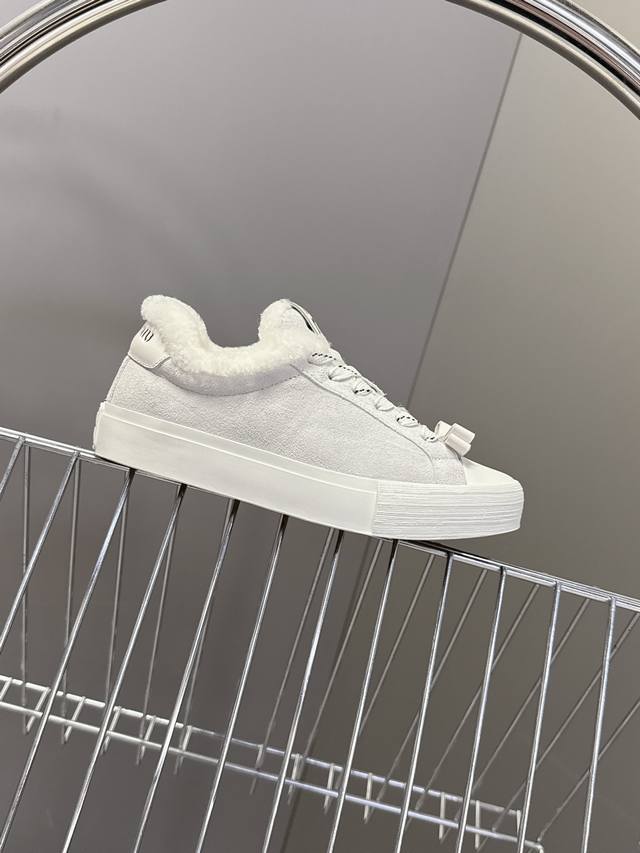 's latest fall/winter runway style, a trendy white sneaker that's a hit with bloggers both domestically and internationally, and a popular Xiaohongshu collection. Retro and stylish, they look stunning on the feet. The minimalist sneaker design features a recognizable tongue and bow embellishment, creating a sweet, casual look. They're incredibly stylish and effortlessly stylish. Made from top-grain cowhide with a genuine wool lining. Original molded outsole. Sizes: 35-40