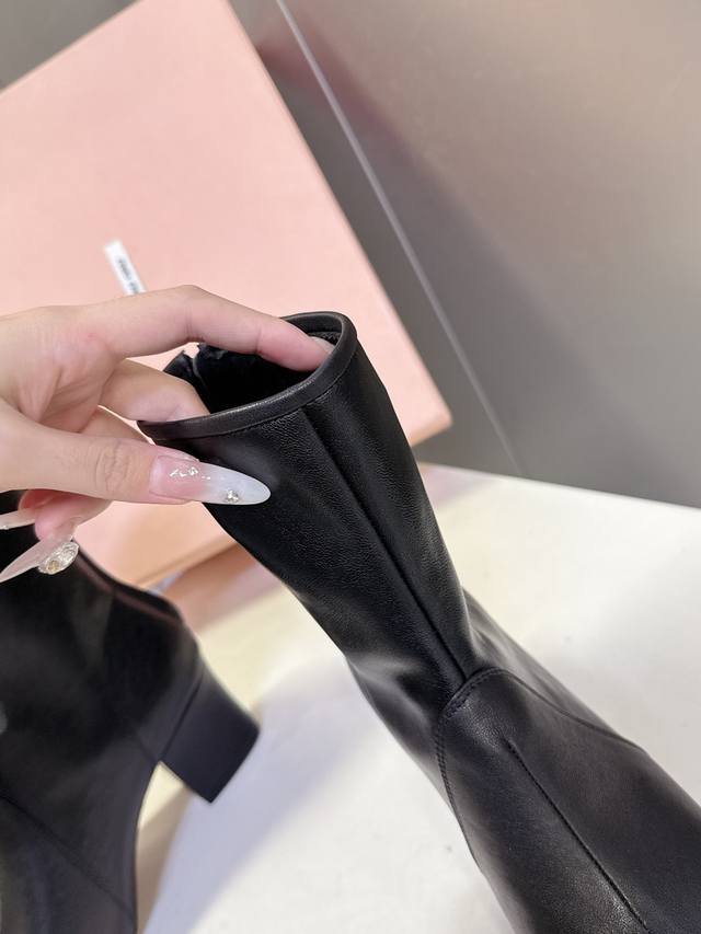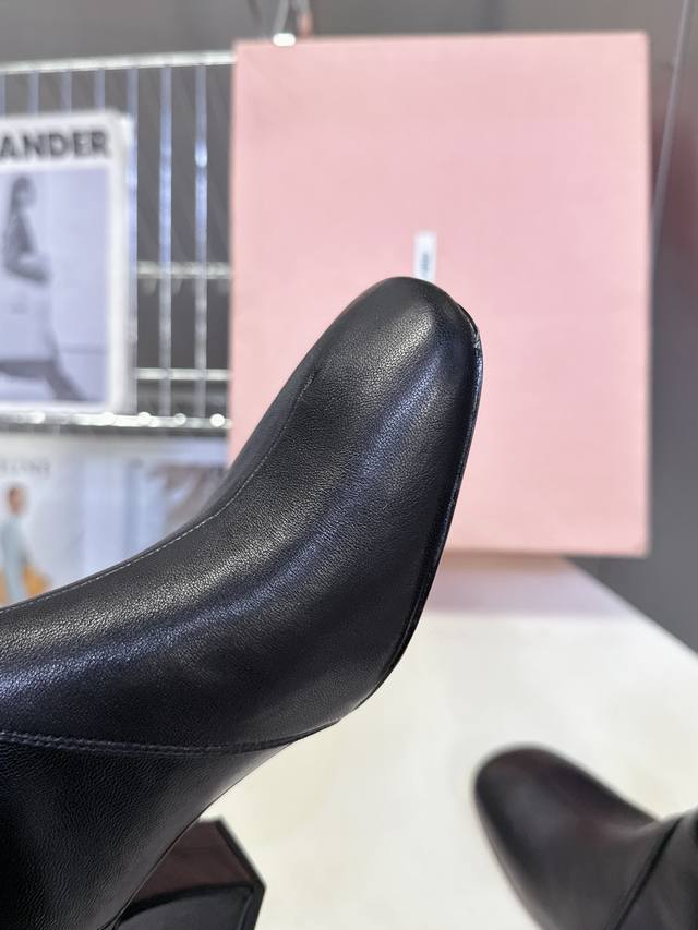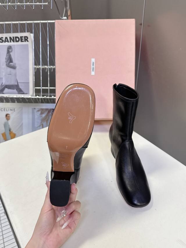 Miumiu's latest Autumn/Winter 2025 runway ankle boots. A highly-photographed item from the runway, they were incredibly popular at Miu's pre-order event, with numerous celebrities and fashion bloggers recommending them. The detailed buttons are a one-to-one replica of the original. This year's most desirable boots, bar none! This autumn/winter season is truly Thai-cool. The Maillard leather is incredibly versatile and beautiful. The fabric is incredibly soft and comfortable! It feels amazing on the foot, creating a loose fit for any size and length, and it really makes your legs look straighter. It has a punk-inspired, premium feel. The toe cap is made of sheepskin, with a stretch leather upper and a 6.5cm heel. It has an Italian leather sole. Sizes: #35-40. 40 Custom made, no returns or exchanges.