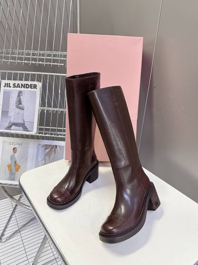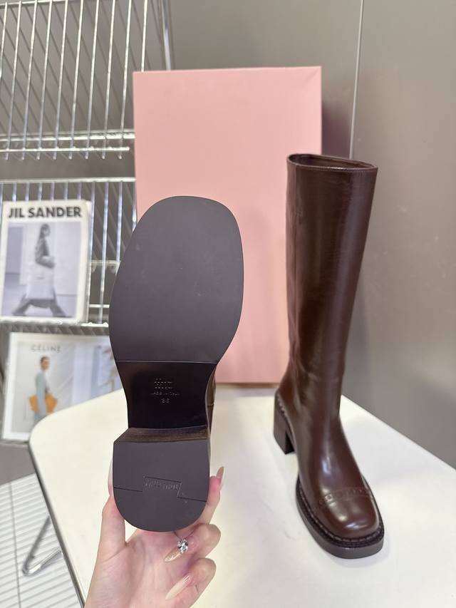 Miumiu's latest autumn/winter retro leather boots DDD Many celebrities and fashion bloggers have been recommending these trendy boots. The design features a partition and Maillard-colored leather for a unisex casual style. The vintage distressed leather adds a touch of sophistication and coolness without sacrificing casualness. The slouchy boot shaft is incredibly stylish and can be paired with various clothing styles. The upper is made of imported distressed calfskin, and the sole is 5cm high. Original mold design with non-slip outsole. Sizes: 35-41, 40, 41. Custom orders are non-refundable. DDD