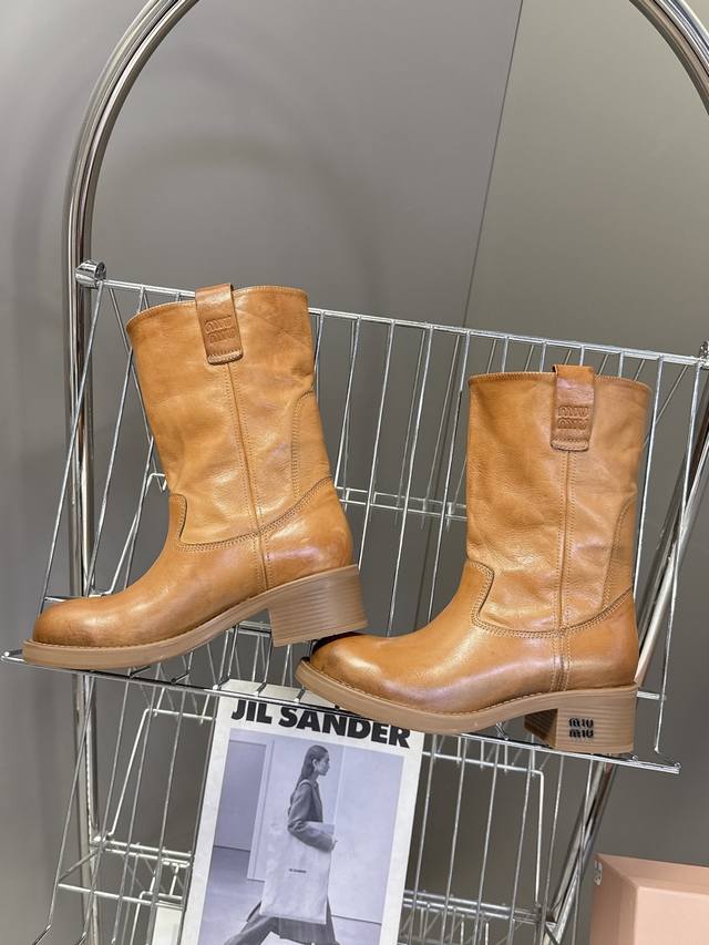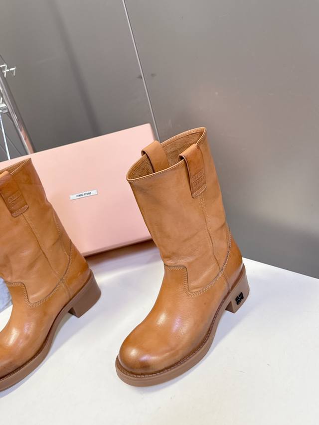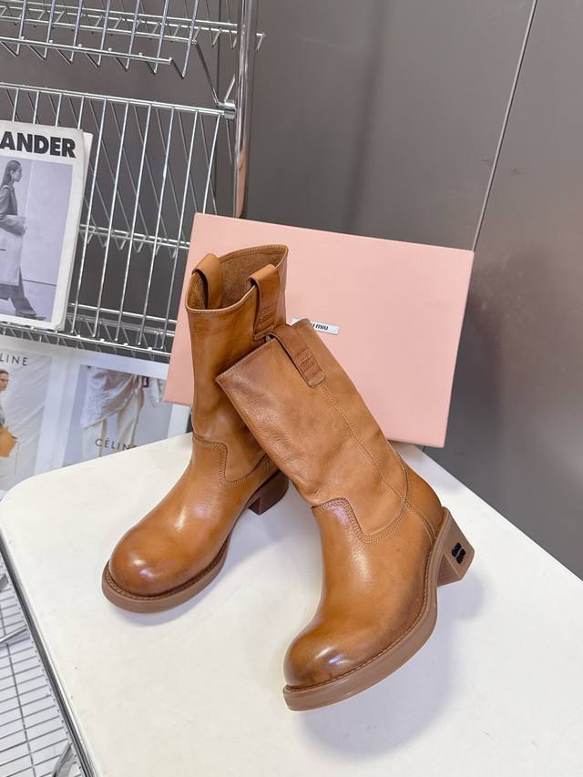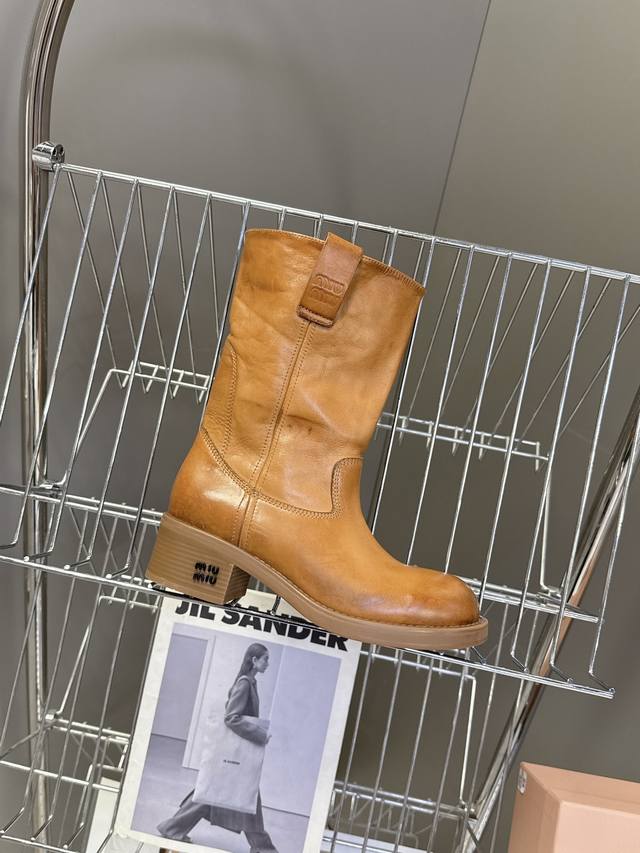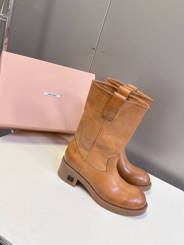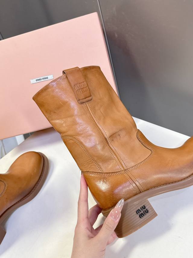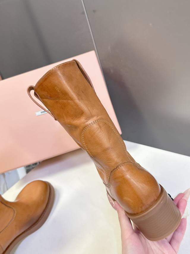 Miumiu's latest autumn/winter retro leather boots, slouch boots. Recommended by many celebrities and fashion bloggers, these boots feature the most popular body-shaping design combined with Maillard-colored leather for a unisex casual style. The retro distressed leather exudes a high-end feel, cool yet relaxed. The slouch of the boot shaft adds a fashionable and sophisticated touch, suitable for various styles of clothing. The upper is made of imported distressed calfskin, original mold, and features a non-slip outsole. Sizes: 35-41, 40, 41. Custom orders are non-refundable.