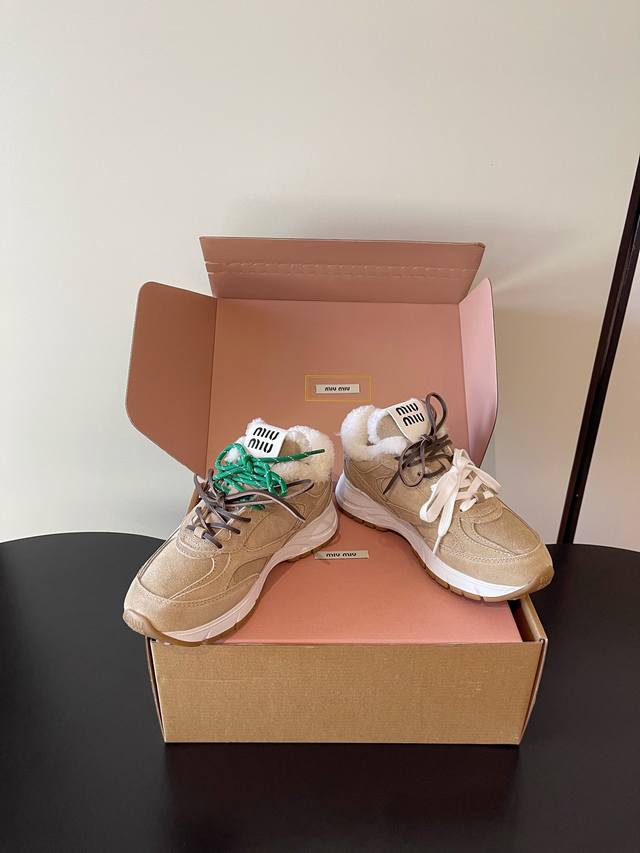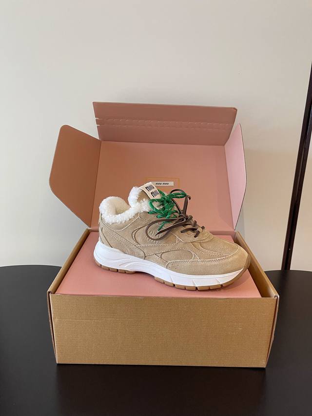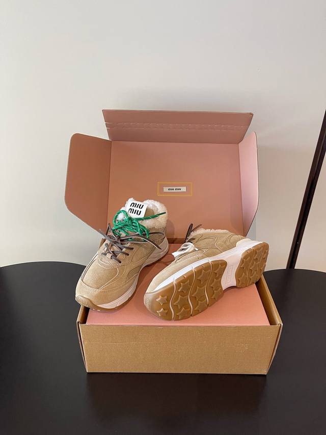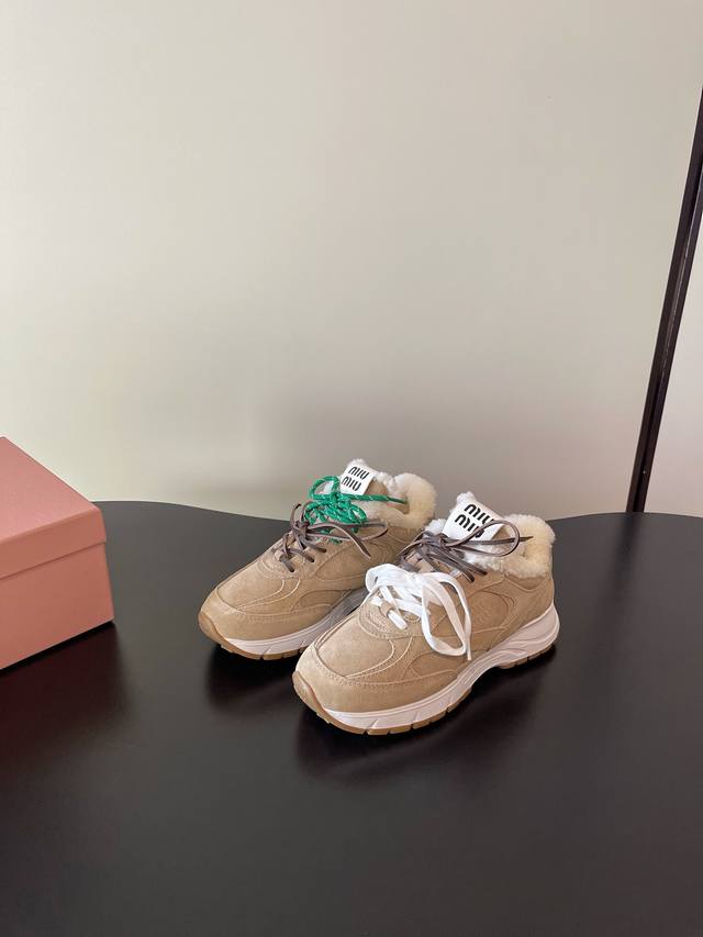 Miumiu's latest wool-lined daddy thick-soled casual sneakers