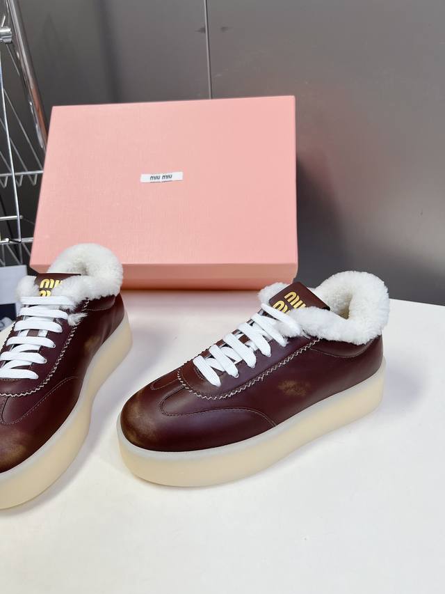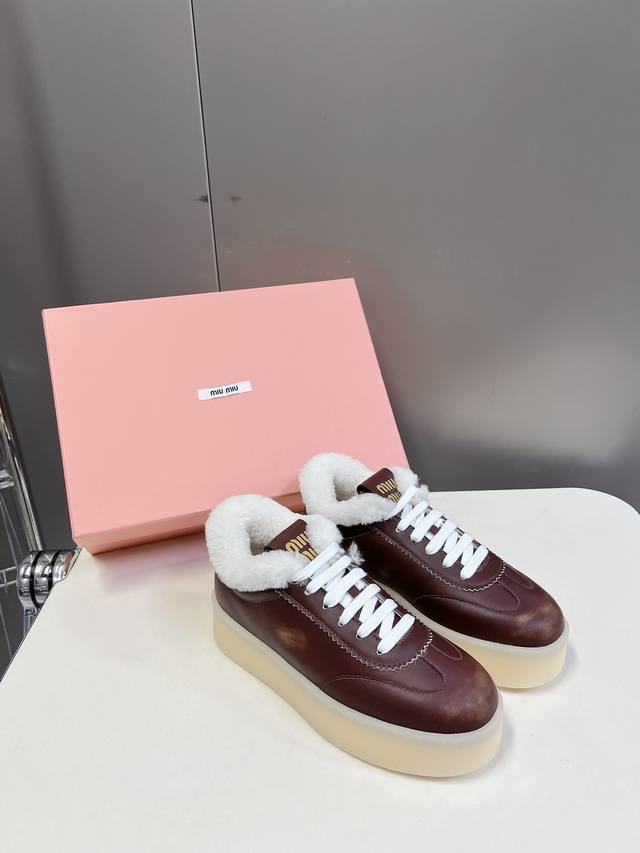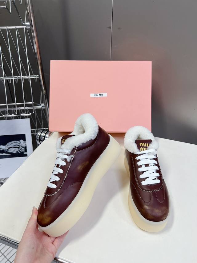 Miumiu's new American retro style sneakers~ A must-have for those super stylish, trendy, thick-soled, furry white sneakers~ Distressed and fashionable, simple and sophisticated, easy to match, very comfortable to wear, a must-have of the year!