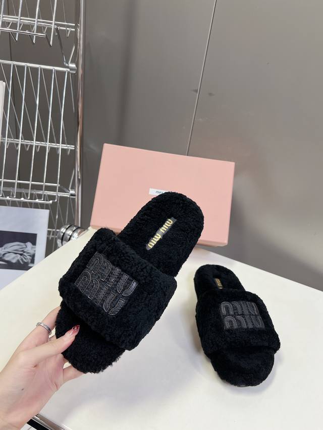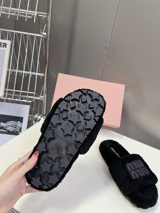 Miumiu's new thick-soled furry slippers for autumn and winter are a must-have item when autumn and winter arrive. They are not only warm but also comfortable to the touch, and they look effortlessly chic no matter what you pair them with. Made of pure wool, they feel thick and substantial when you push them apart. The lining is made of real wool and feels soft underfoot. I love them. Custom-made original rubber outsole for wear resistance and non-slip performance. Sizes: 35-41, 40, 41, custom made.