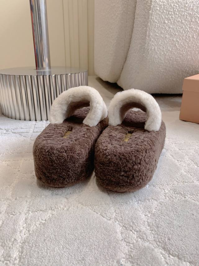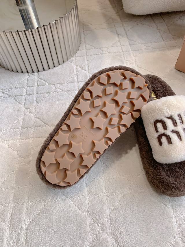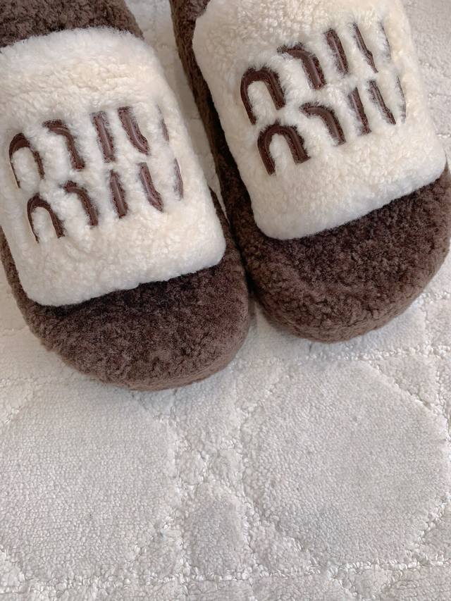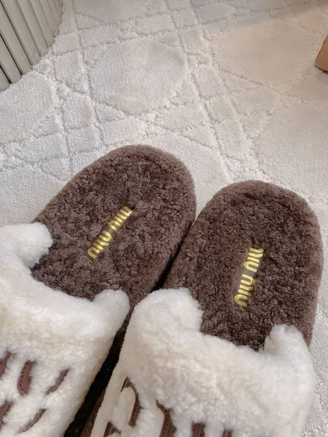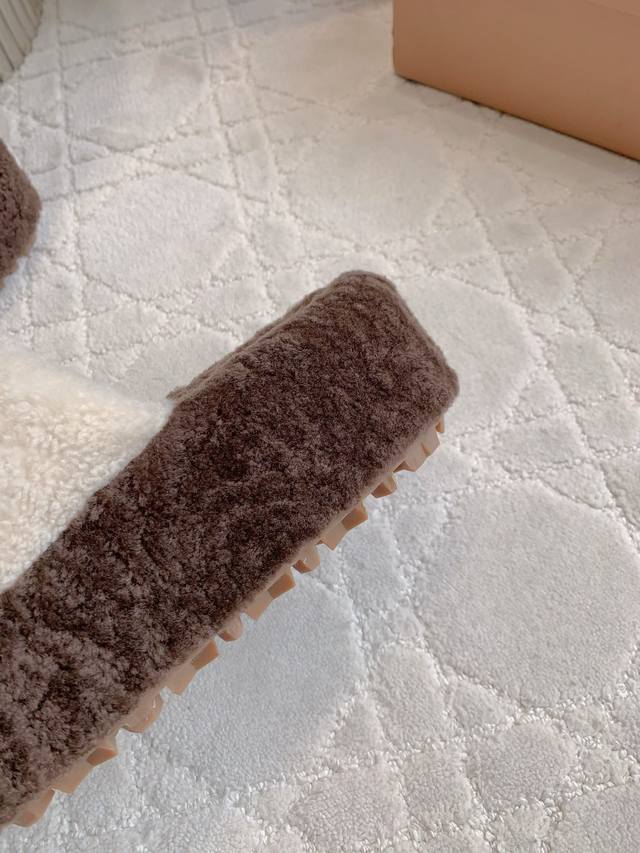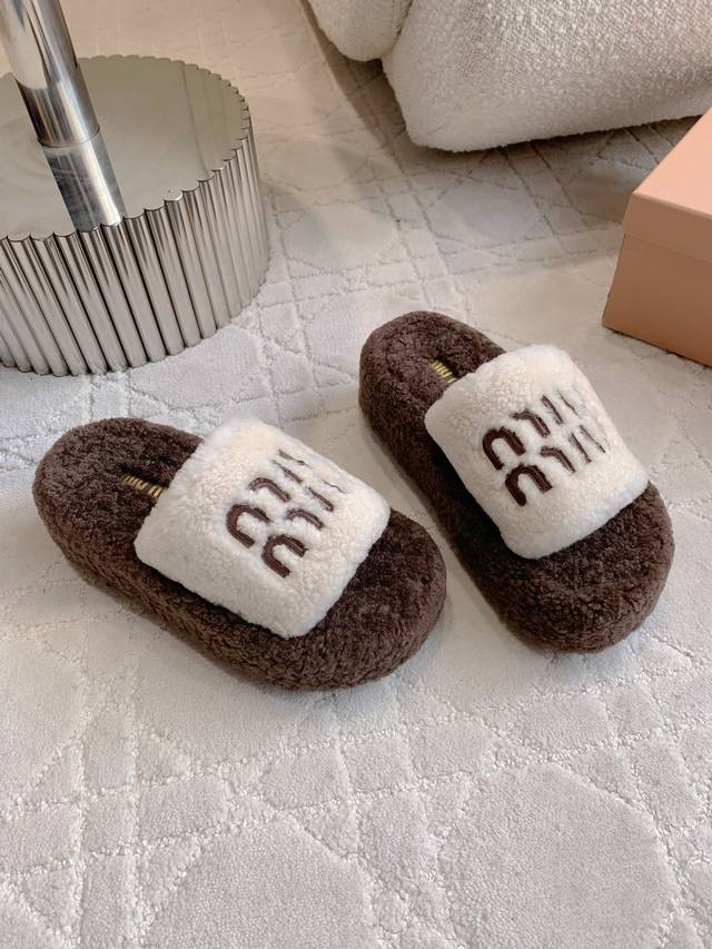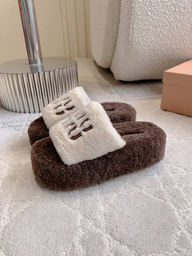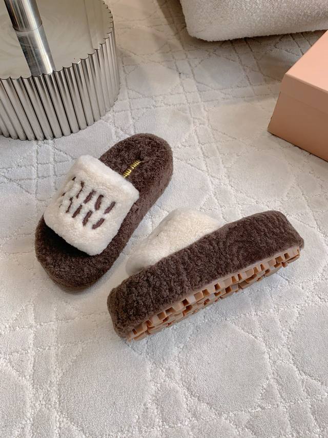 Miu's new furry platform slippers are made of super thick Australian wool. They feel like stepping on clouds and are super comfortable. Classic and versatile.