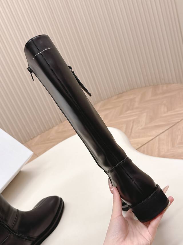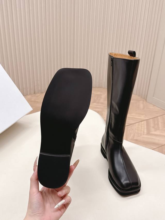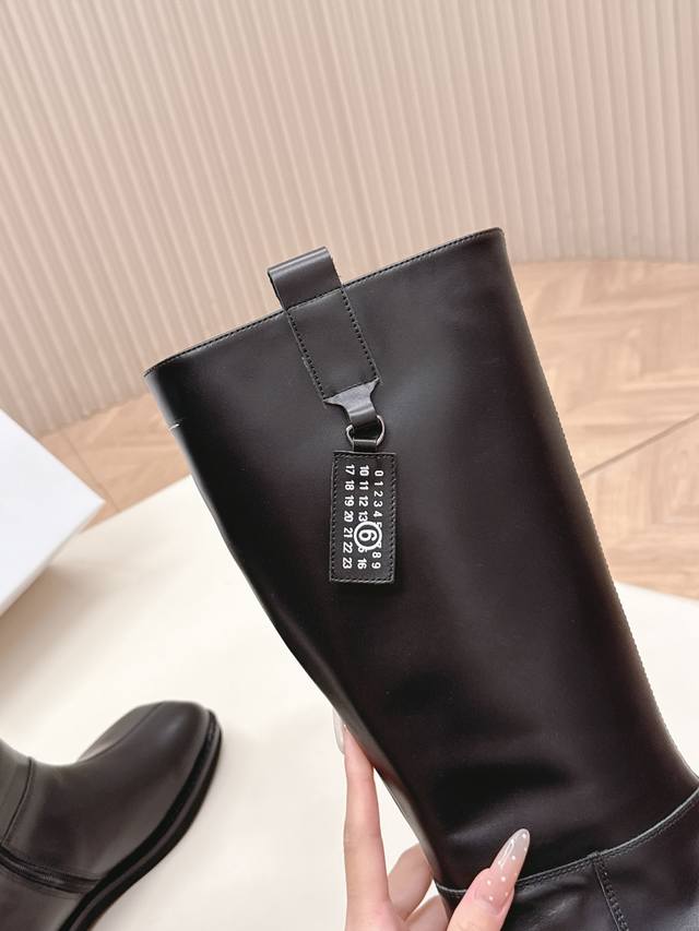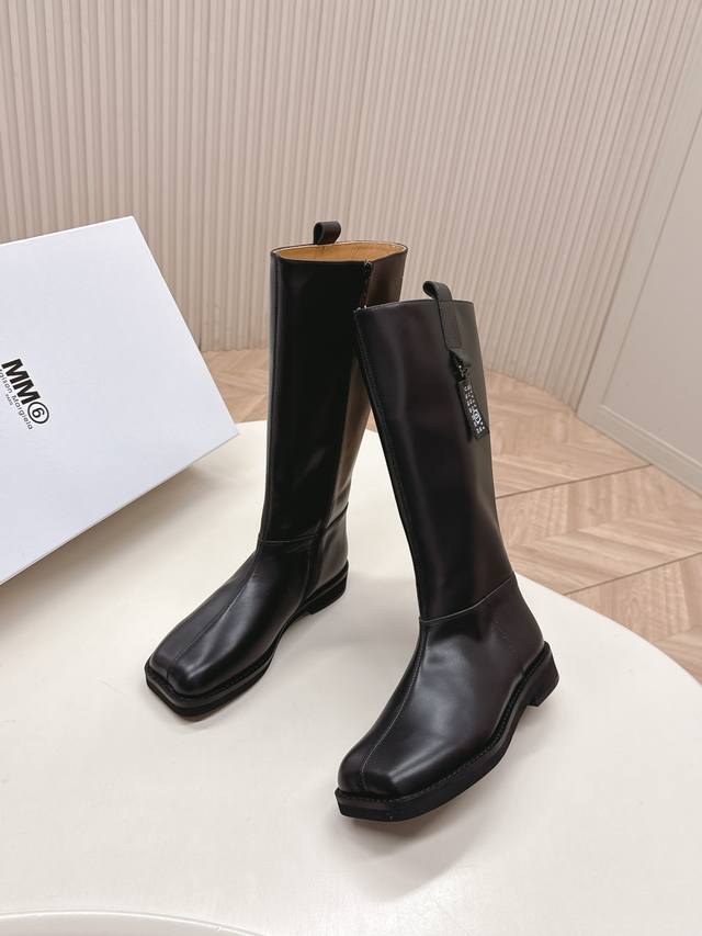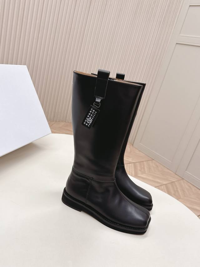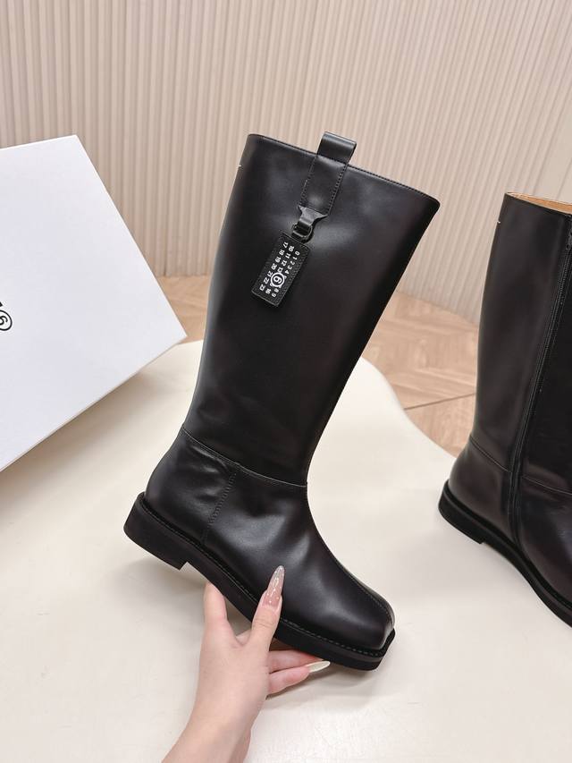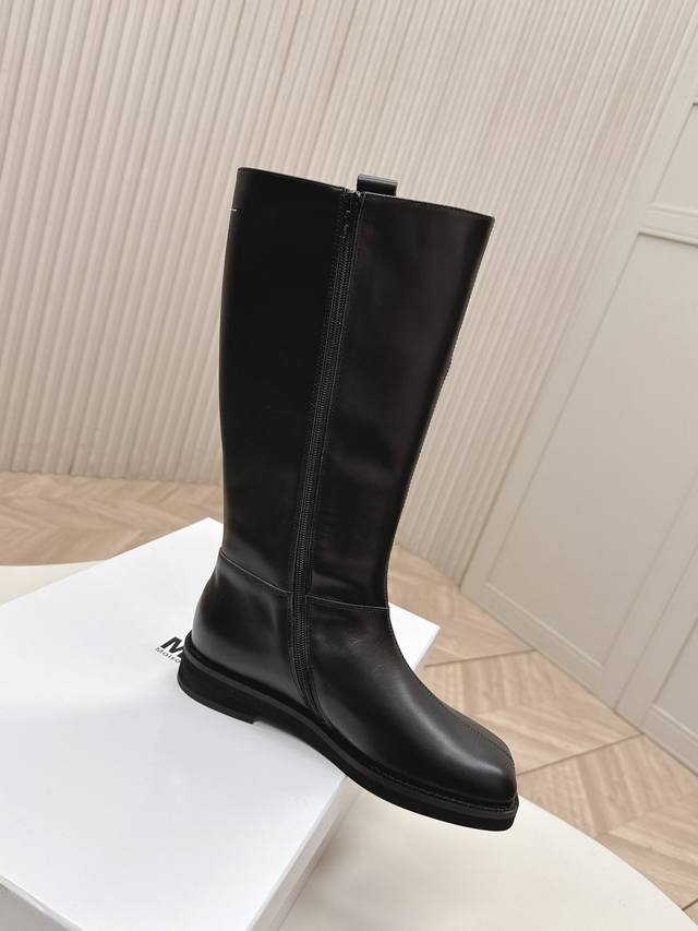 Mm6 2025 Winter Newest High Boots in Cowhide. Super stylish! The overall design, workmanship, and materials not only give it a superb texture but also provide top-notch comfort. The classic square toe paired with a stiletto heel creates a sophisticated and sexy look that flatters the legs! Upper: Cowhide, Nylon; Insole: Cowhide; Outsole: Original Rubber; Sizes: 35-39; 40.41 Custom Made.