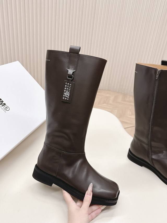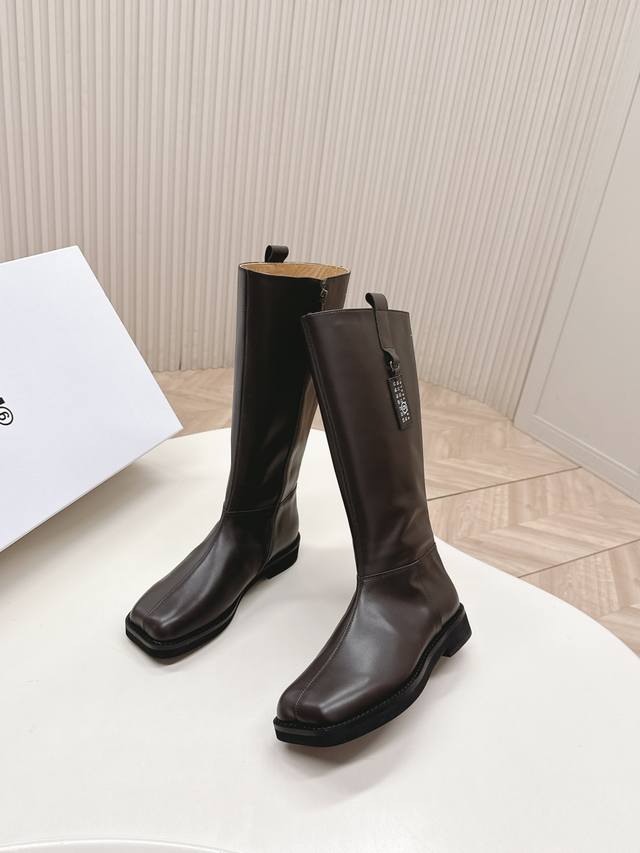 Mm6 2025 Winter Newest High Boots (Mandy/Mandy/Mandy). Super stylish! The overall design, workmanship, and materials not only give it a fantastic feel but also provide top-notch comfort. The classic square toe paired with a stiletto heel creates a sophisticated and sexy look that beautifully flatters the legs! Upper: Nubuck, Cowhide Lining/Insole: Cowhide Outsole: Original Rubber Outsole Sizes: 35-39 40.41 Custom Made