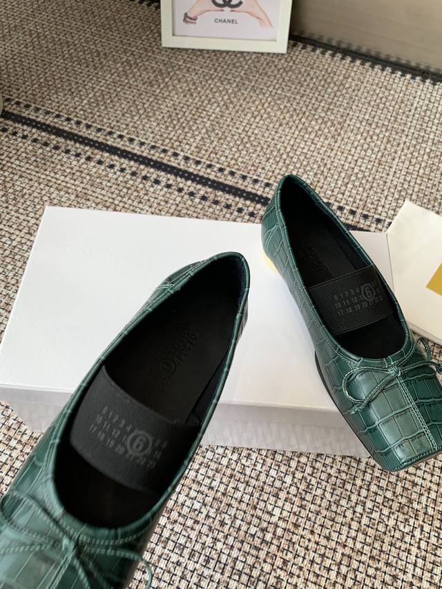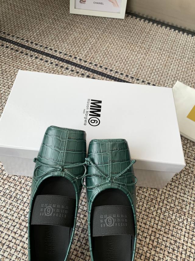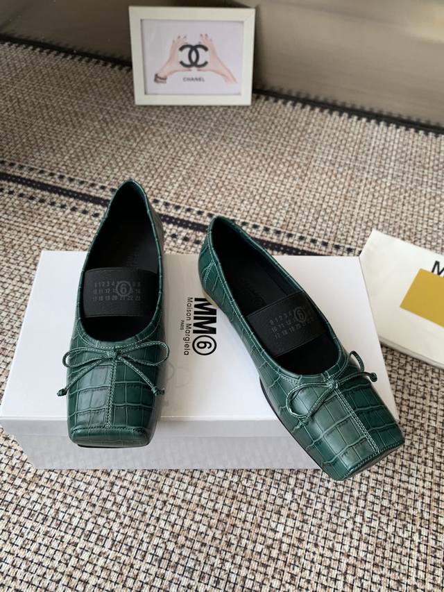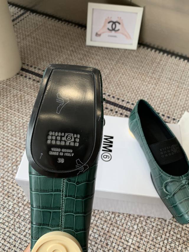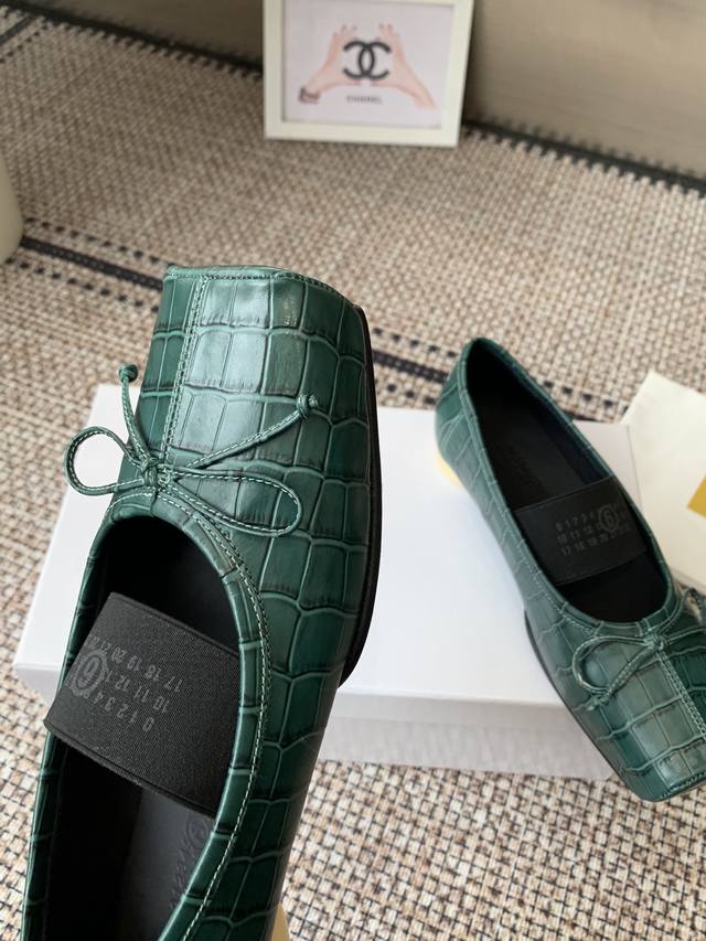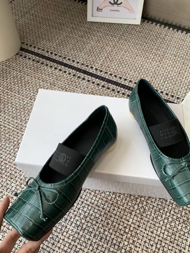 Mm6 Maison Magical's new, super-hot 25Ss square-toed, flat-soled Mary Jane ballet flats. Needless to say, they're incredibly comfortable. The unique silhouette, ingenious fabrics, and contrasting material collages are all hallmarks of the Mm6 Maison Magical. These ballet flats are made from authentic, imported cowhide with embossed texture. The elegant square toe and logo elastic band, along with the Italian leather outsole, are simply stunning. Sizes: 35-39, 40, custom-made.