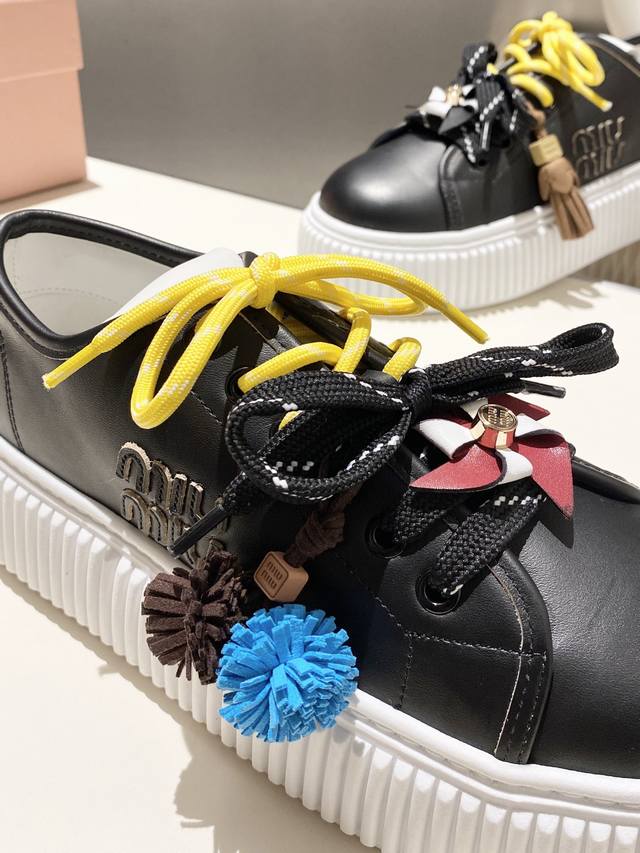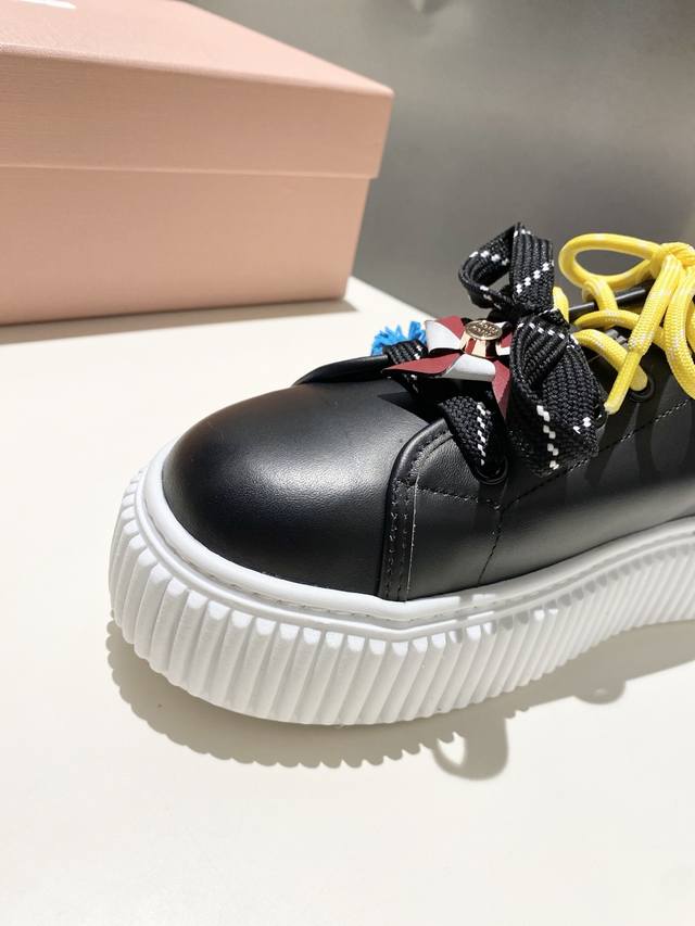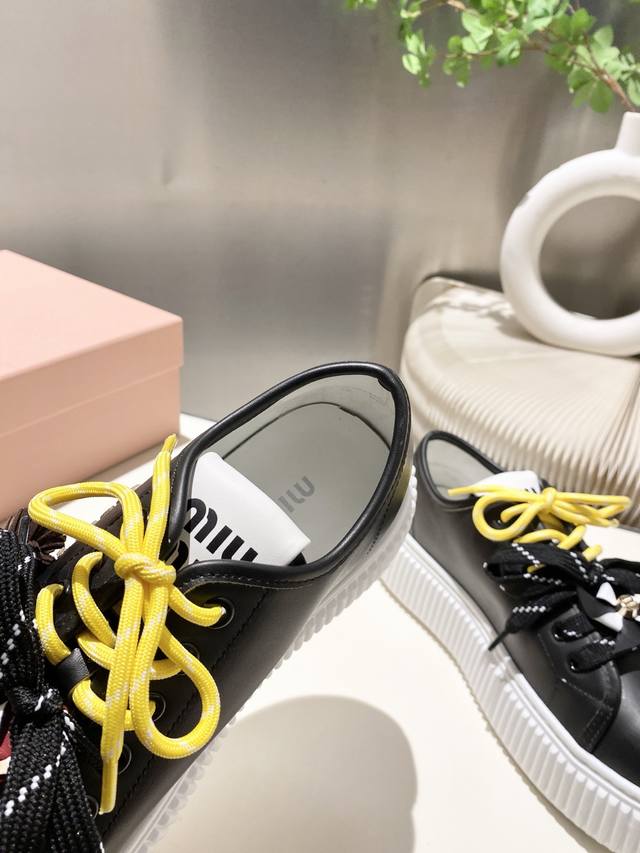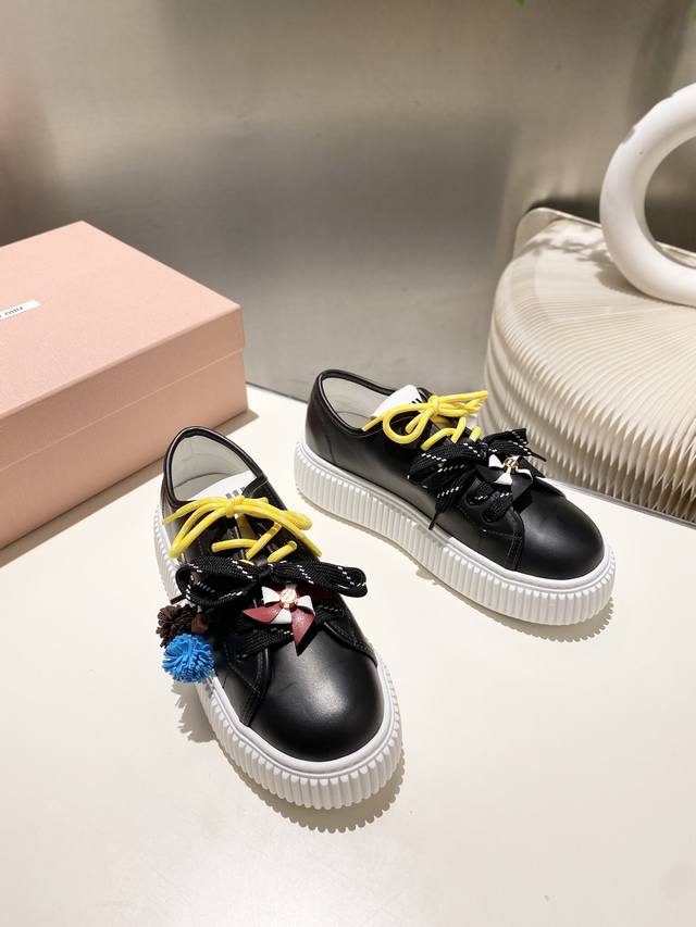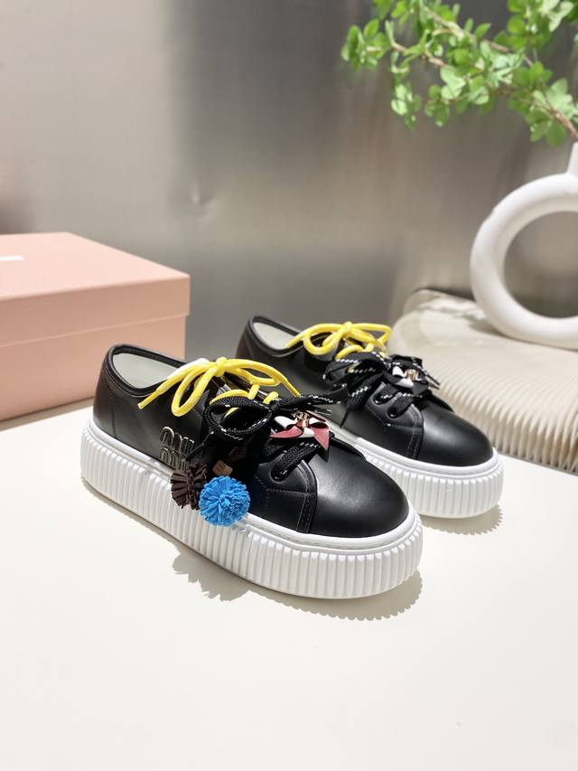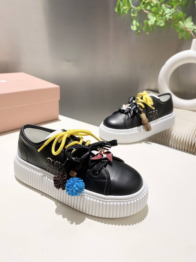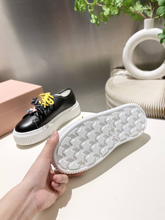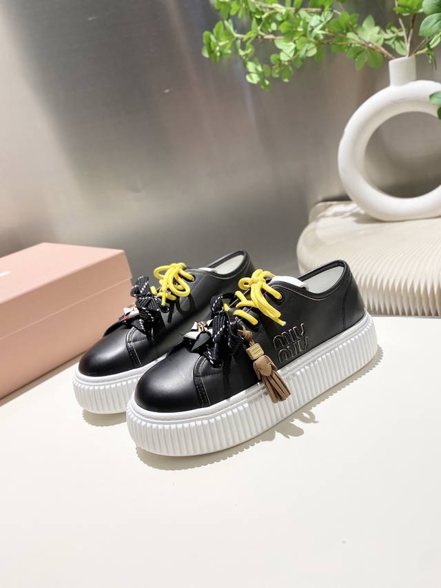 Mole. Leather. 2025 Miu Miu Autumn/Winter New Thick-Soled Biscuit Shoes, Simple Design, Original Mold Sole. The popularity of Miu Miu biscuit shoes is only increasing, not only because of their high versatility but also because of their outstanding feel. The sole has layers of waves, just like a biscuit! The look is stunning and timeless. Miu Miu shoes have always been known for their girlish style, and few girls can resist their sweetness! This time, it's Miu Miu's biscuit shoe series. Although the design is simple, the logo on the tongue is highly recognizable! They can be easily paired with long skirts, short skirts, jeans, casual wear, etc., creating a unique style. Upper: Two panels of cow suede and cowhide; Lining: Two panels of wool and leather. Original mold sole. 6cm. Sizes 35-41. Size 41 is custom-made and non-refundable.