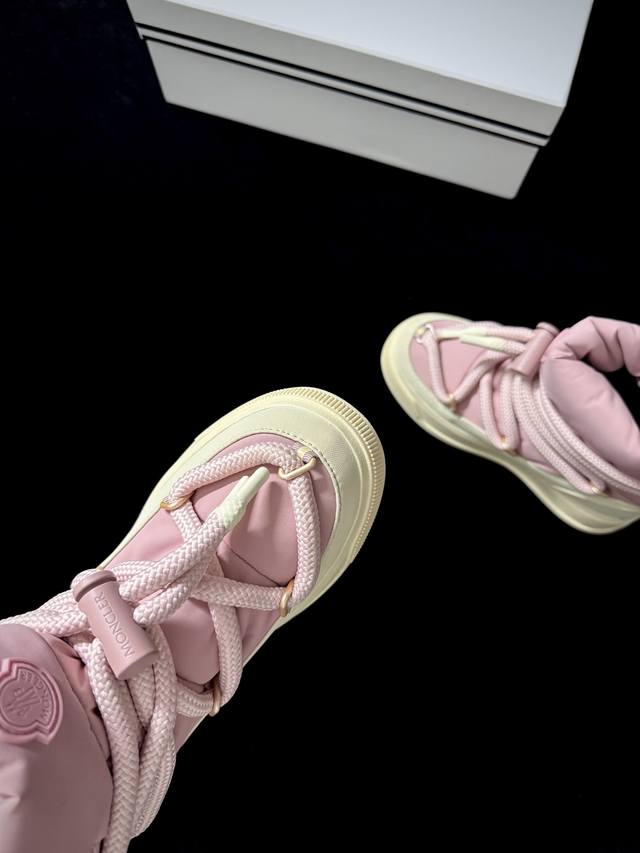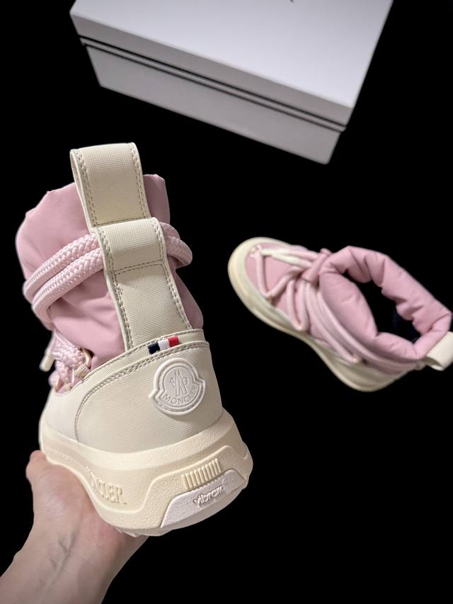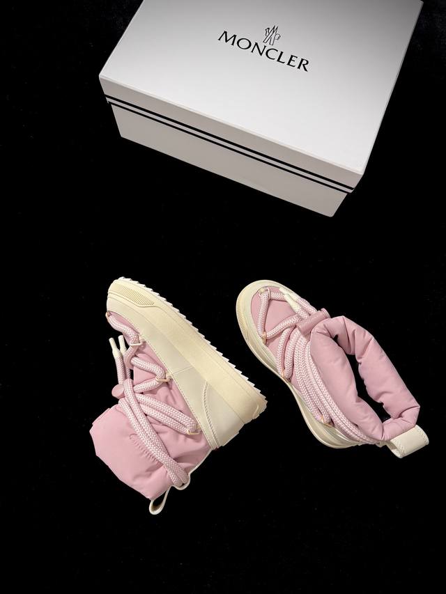 Moncle* New Arrival DDD When high-street techwear meets luxurious texture, these high-top sneakers perfectly capture winter fashion. DDD The color scheme exudes sophistication, and the three-dimensional lace-up design is both stylish and cool. Wearing them is like stepping into a fashion magazine. Whether paired with a coat or a hoodie, these shoes will make you stand out in the cold winter. DDD Imported waterproof coating on the upper, ski fabric; imported cashmere lining; original mold; outsole sizes 35-39; sizes 40 and 41 are available for order. DDD