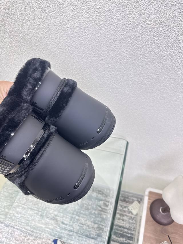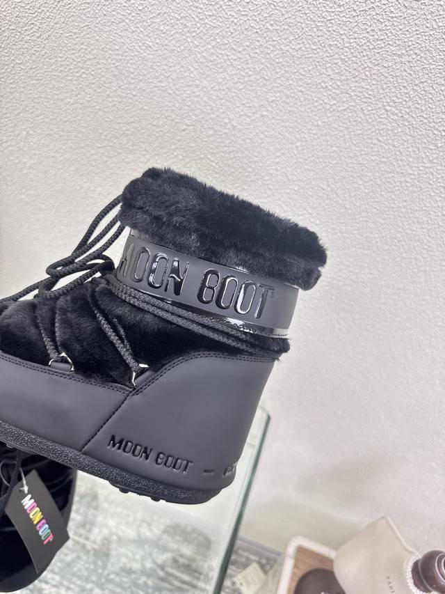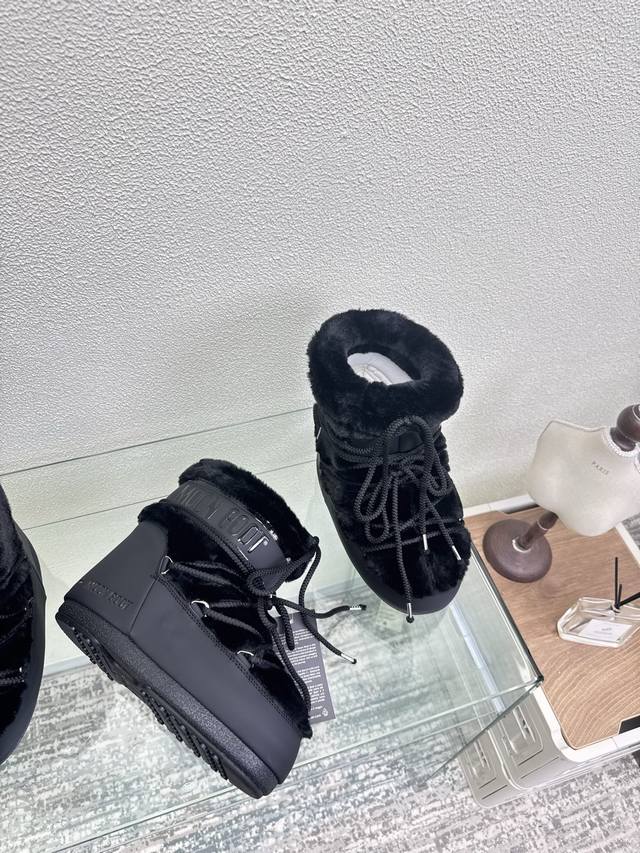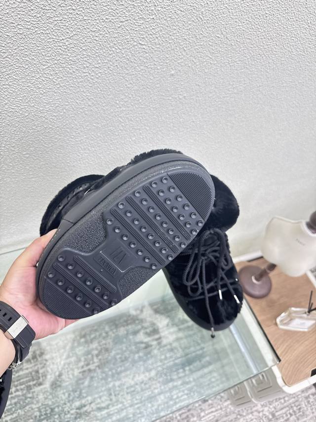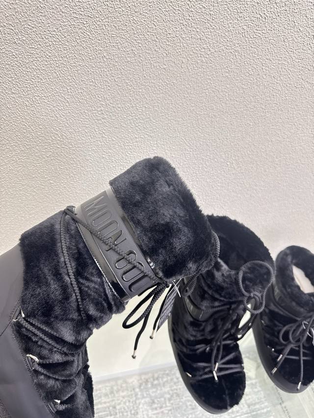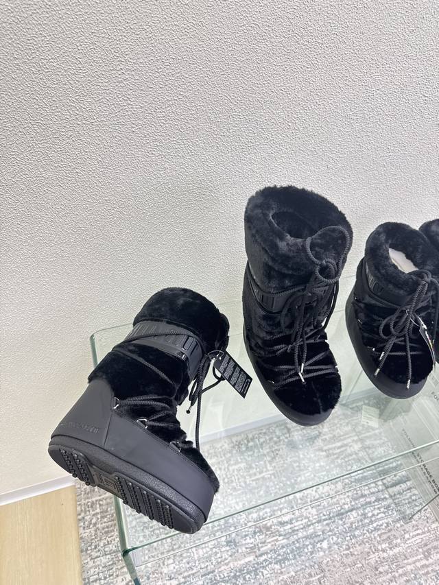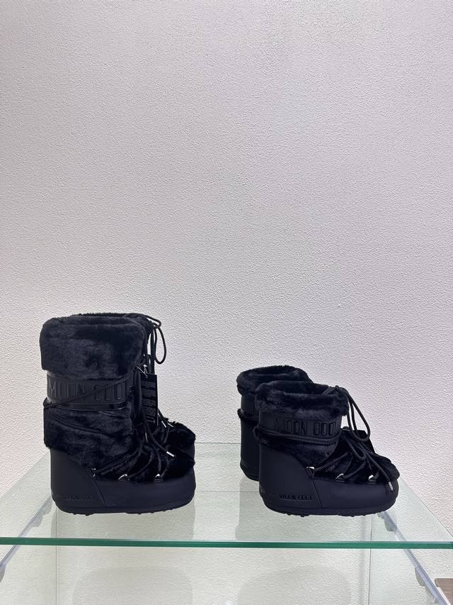 Moon Boot, Black Fur and Black Leather, Factory Price. Wang Hedi and Yu Shuxin are also wearing this item! Who's already looking forward to skiing in autumn? Unlock the must-have ski item worn by Wang Hedi, Yu Shuxin, and many other celebrities: Moon Boots! Combining high style, slip resistance, waterproofing, and warmth, these are fashionable items born for outdoor and snow adventures. The wide boot shaft paired with skinny jeans can flatter your leg shape and unlock a stylish chic look for everyday wear. Sizes 35, 36, 37, 38, 39, 40, 41, 40, 41 (custom sizes available). Comes with original packaging.