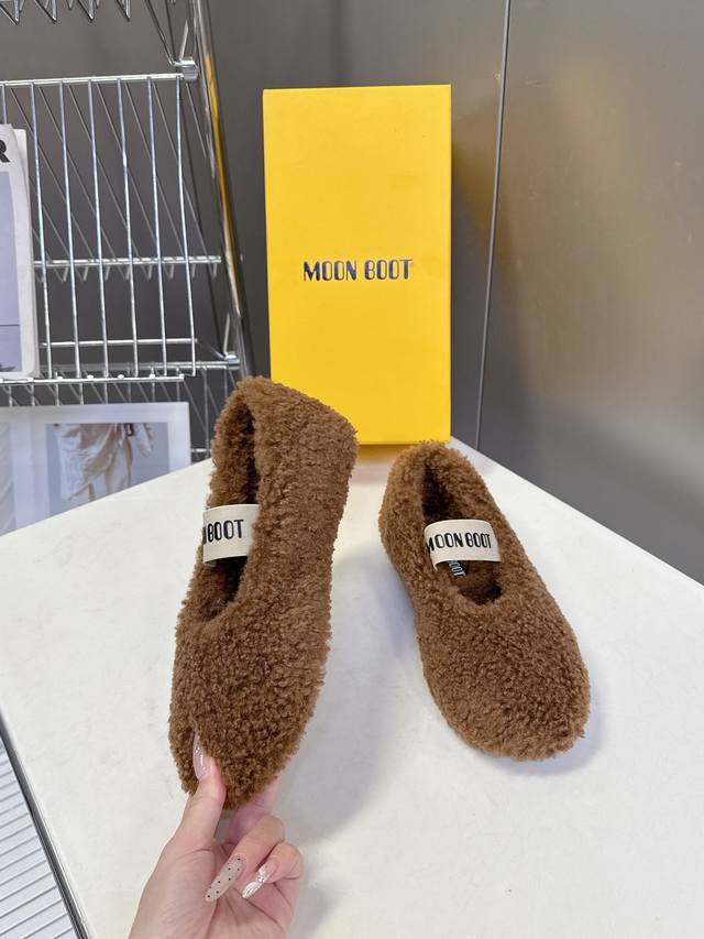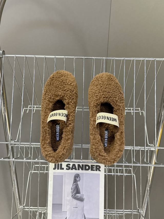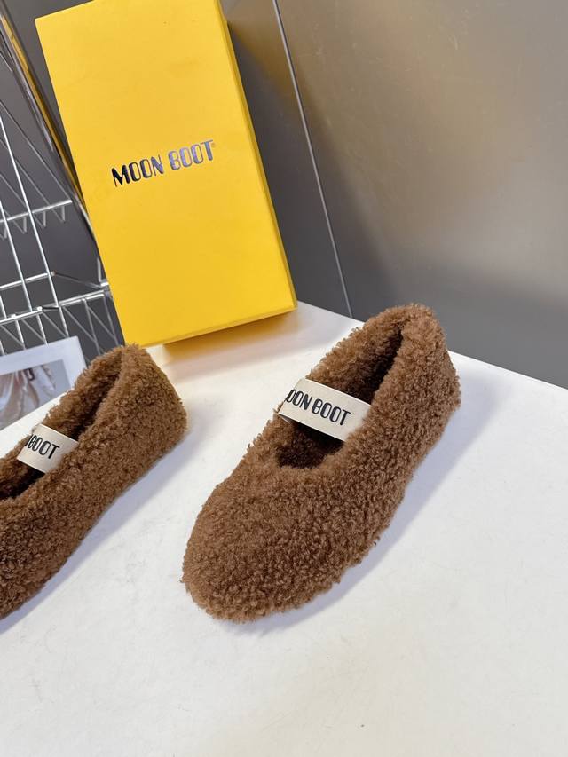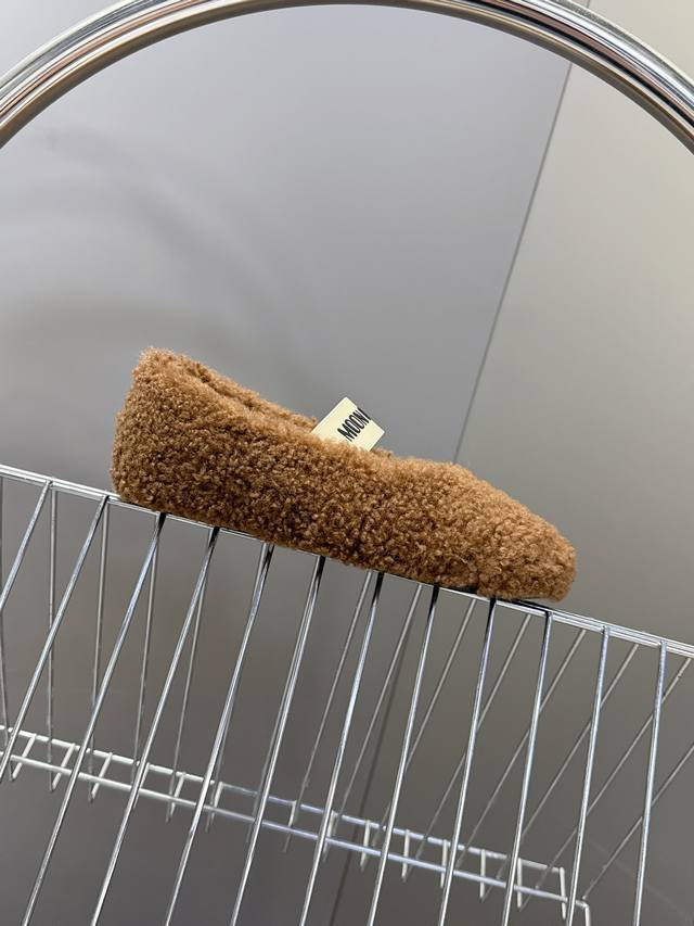 Moon Boot snow boots, brand of fluffy slippers. These slippers cleverly blend classic brand elements with cutting-edge fashion in their unique design. The iconic brand logo is meticulously crafted and applied to the upper, making it eye-catching and bold