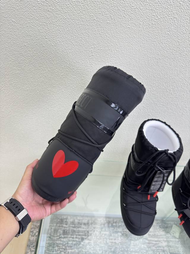 Moon Boots, heart-shaped factory price p DDD A must-have ski item worn by Wang Hedi and Yu Shuxin DDD Black