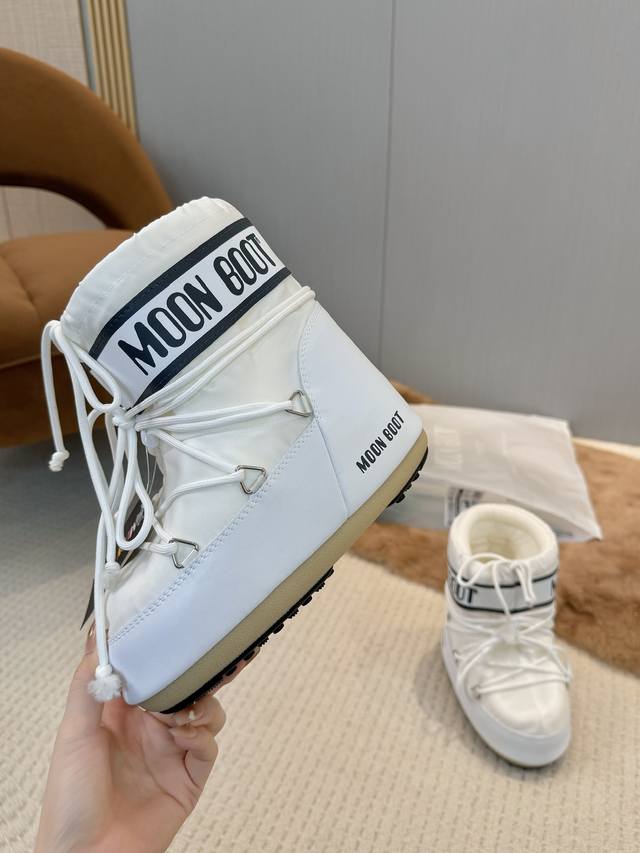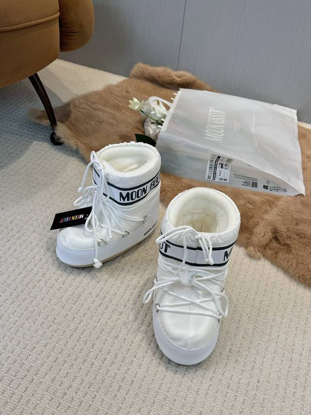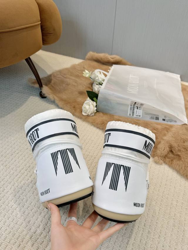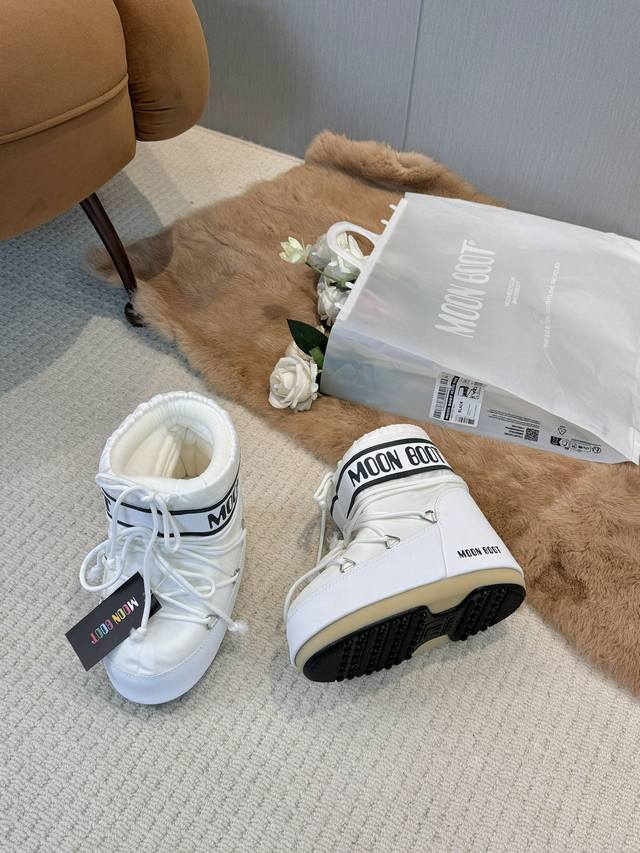 Moon Boots, the darling of the ski season! These snow boots were already incredibly popular back in the millennium. Celebrities like Paris Hilton and Victoria Beckham were frequently seen wearing them. Now, with the Y2K trend making a comeback, these quirky yet adorable snow boots are back in style. Unisex and left/right, they look massive but are surprisingly practical, and they're incredibly slimming when paired with yoga pants. Perfect for those heading north! A must-have for snow activities, they're absolutely irresistible! Upper: Waterproof fabric; Lining: 100% down-filled cotton; Sole: Thermoplastic rubber; Sizes: 35-38, 39-41; Packaging: Original Moon Boot transparent tote bag; Hidden heel lift: 4cm.
