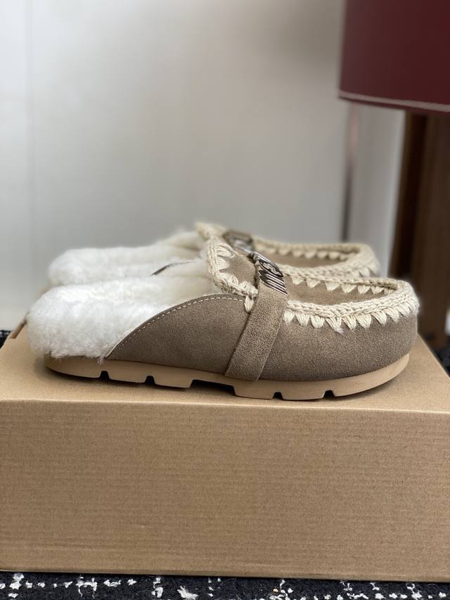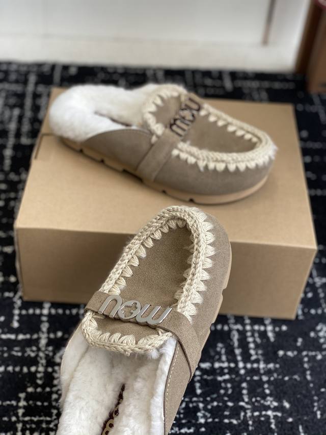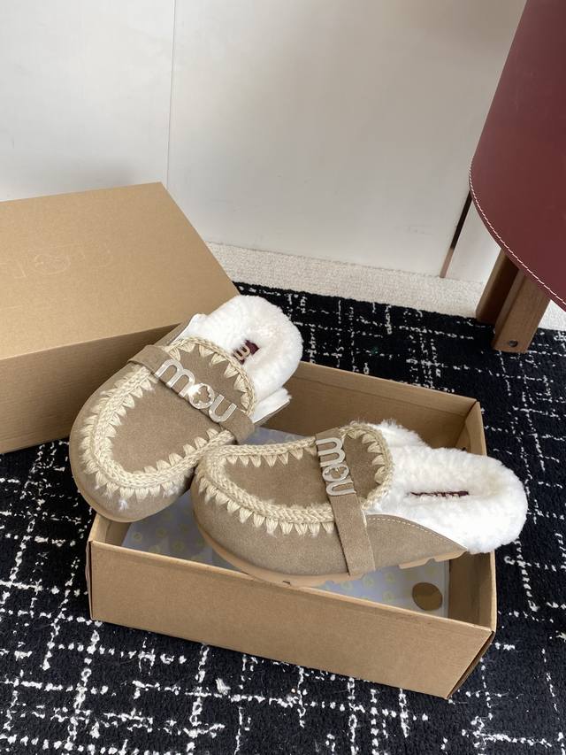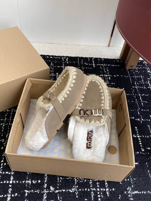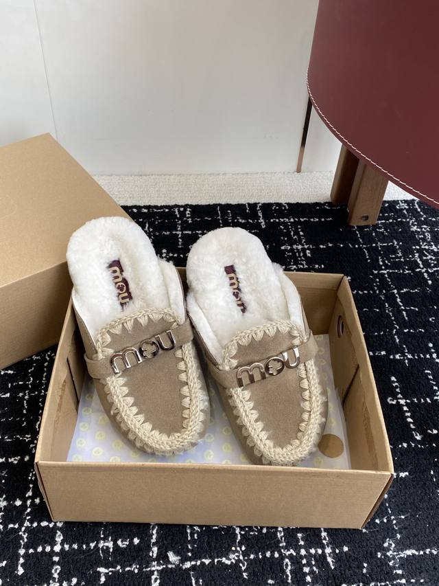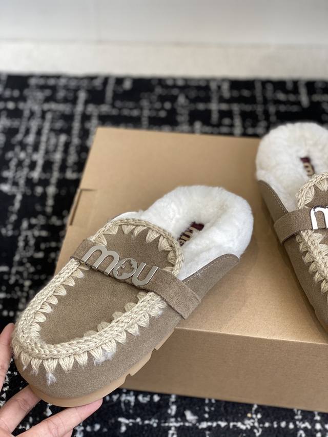 DDD Mou trendy wool slippers with highly recognizable design, combining nature and fur art. A globally popular autumn/winter item, a must-have for warmth, a favorite of fashion bloggers, and adorably quirky snow boots. Features include a hand-stitched leather and fur upper, wool lining, and a durable, non-slip TPU outsole. Sizes: #35-39, 40, 41. Custom orders, no returns or exchanges.