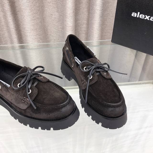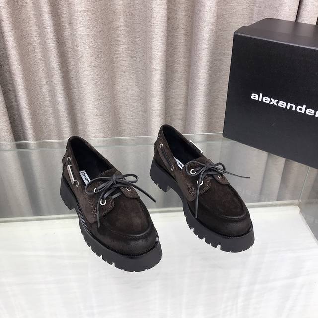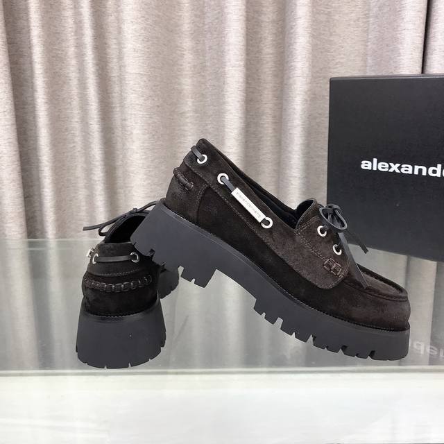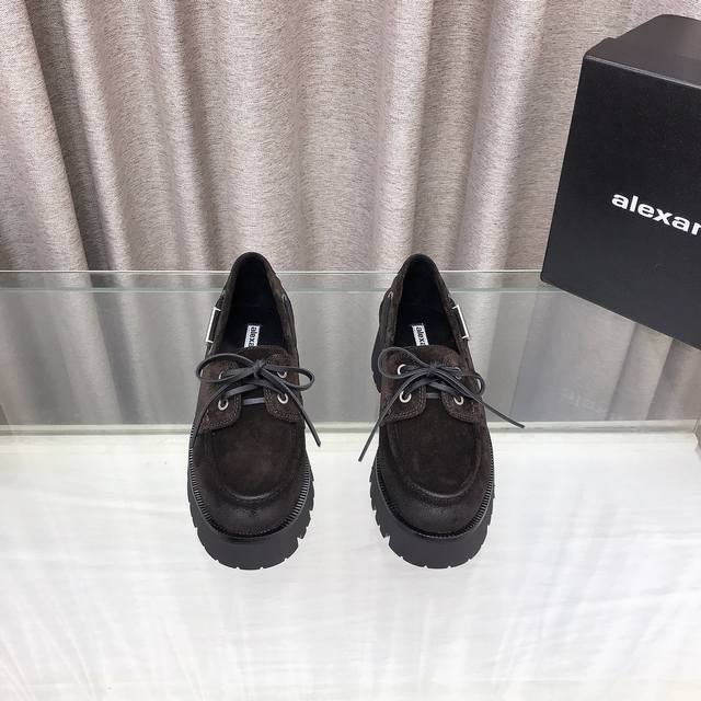 New Alexander Wang style! High-quality Alexander Wang original 1:1 material, Alexander Wang platform loafers. This classic loafer is made of black shiny calfskin and features a chunky mid-heel design. Top quality! Alexander Wang autumn/winter new women's style with metal logo lettering and metal buckle! The most popular element. The perfect match for a queen! Simple, stylish, and playful loafers. Upper: Imported suede cowhide, coffee and khaki colors. Lining: Imported sheepskin. Insole: Imported sheepskin. Heel height: 4.5cm. Outsole: Original molded logo rubber one-piece outsole! Sizes: 35-39, 34, 40. Custom made.