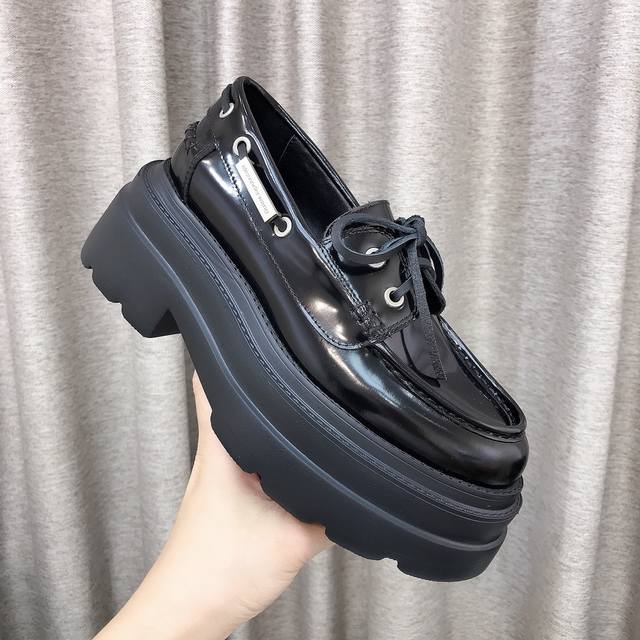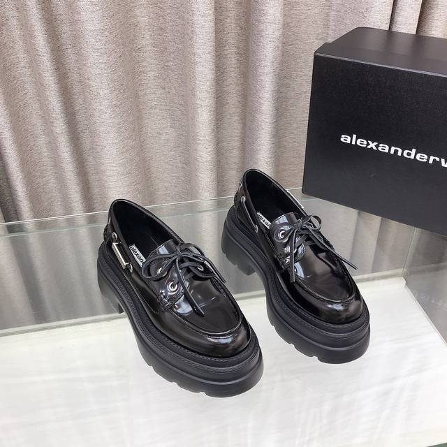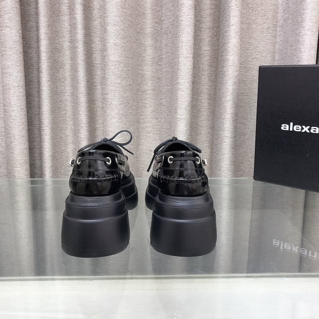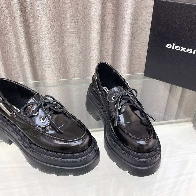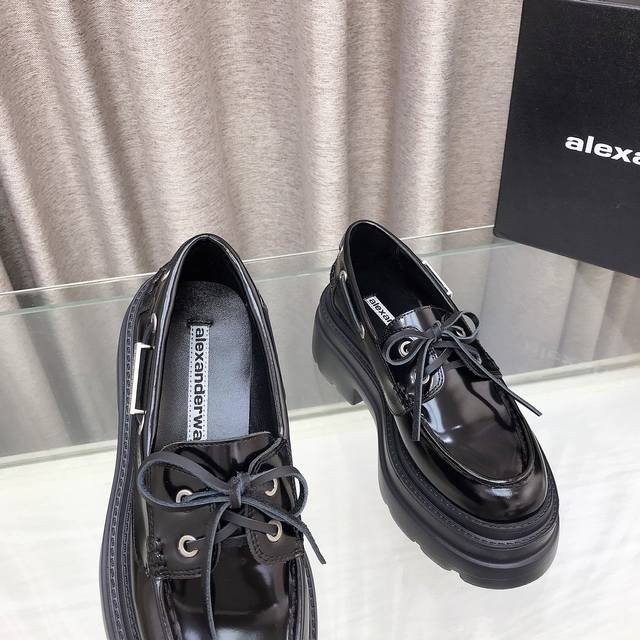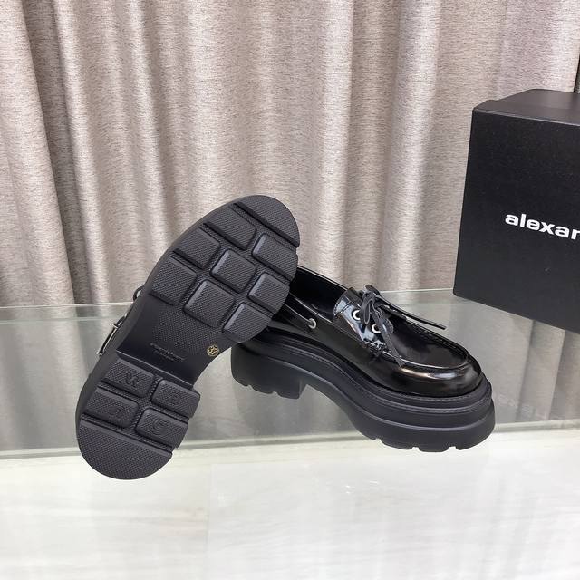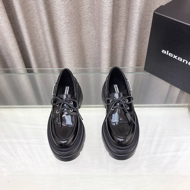 New Alexander Wang style! High-quality Alexander Wang original 1:1 material, Alexander Wang platform loafers. This classic loafer is made of black shiny calfskin and features a chunky mid-heel design. Top quality! Alexander Wang autumn/winter new women's style with metal logo lettering and metal buckle! The most popular element. The perfect match for a queen! Simple, stylish, and playful loafers. Upper: Imported split-edge cowhide, calfskin, two colors. Lining: Imported sheepskin. Insole: Imported sheepskin. Heel height: 7.5cm. Original molded logo rubber outsole! Sizes: 35-39, 34.40 custom-made.