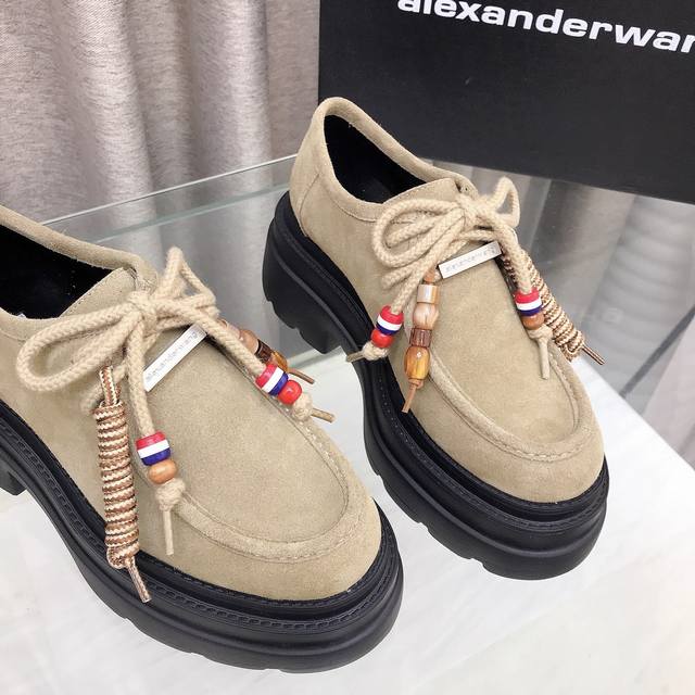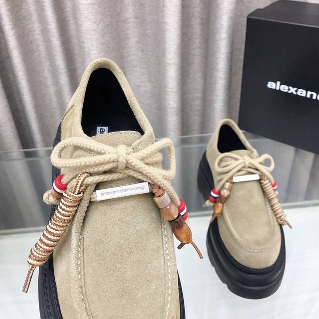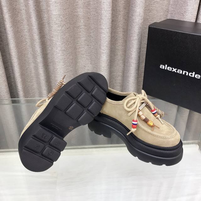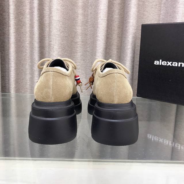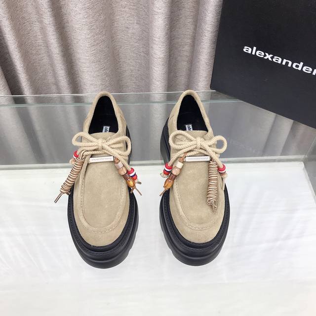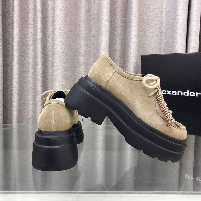 New Alexander Wang style! High-quality Alexander Wang original 1:1 material, Alexander Wang platform loafers. This classic loafer is made of black shiny calfskin and features a chunky mid-heel design. Top quality! Alexander Wang autumn/winter new women's style with metal logo lettering and metal buckle! The most popular element. The perfect match for a queen! Simple, stylish, and playful loafers. Upper: Imported suede cowhide, coffee and khaki colors. Lining: Imported sheepskin. Insole: Imported sheepskin. Heel height: 7.5cm. Outsole: Original molded logo rubber one-piece outsole! Sizes: 35-39, 34.40 custom-made.