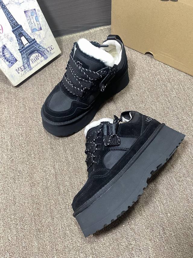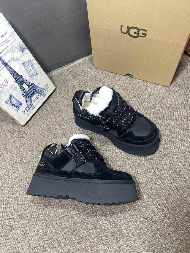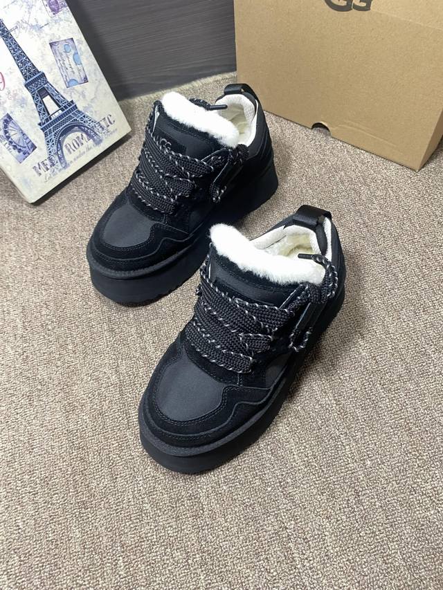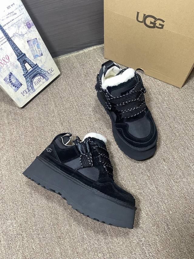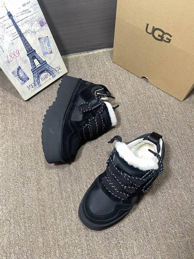 New Arrival: Ugg Merlin Casual Outsole, same as official website. Colors: Chestnut, Black, Lavender Dark Purple, Jasmine White. Features: Cowhide suede, sheepskin lining, insoles, 5cm EVA thickened outsole, lace-up, color blocking, casual style. Sizes 35-40, size 41 available.