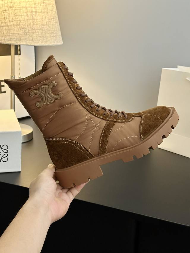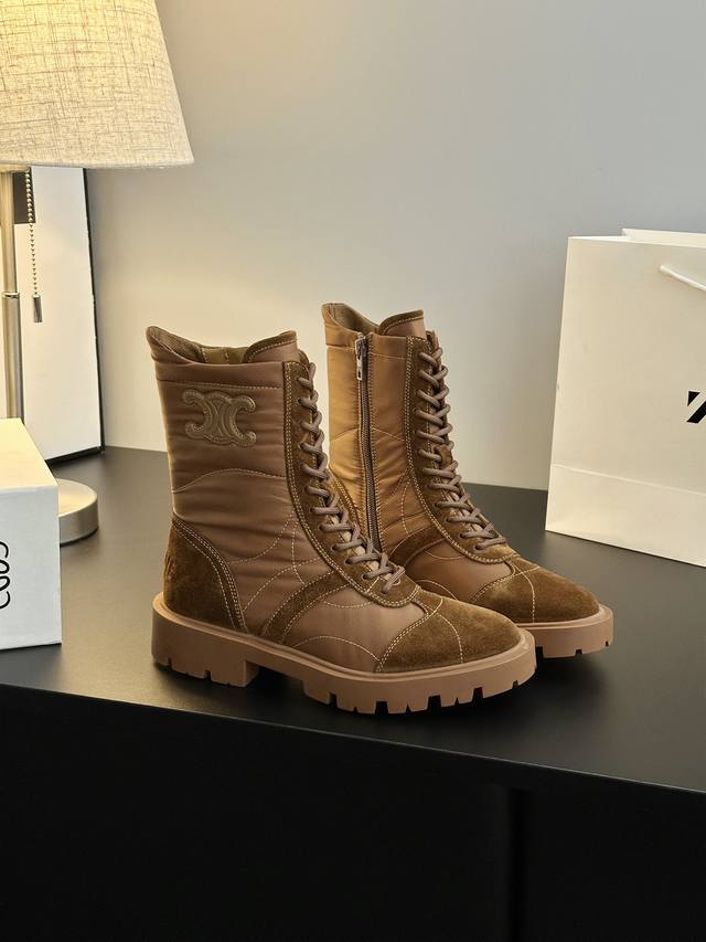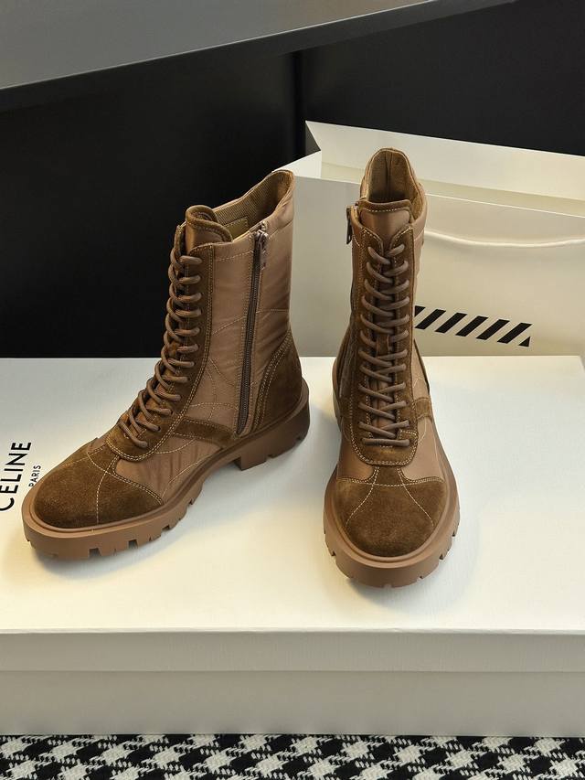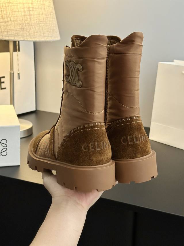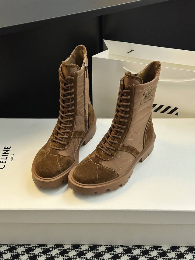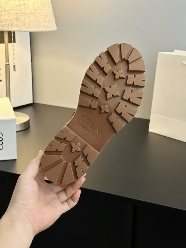Looks like a genuine product without any issues, high-quality finish, rejects obviously fake or low-quality goods. Original last, adjusted countless times, retro thick-soled mid-calf Martin boots. Celine has many great styles this season, such as these military boots with a strong biker vibe. The boot shaft design is particularly noteworthy; it flatters all leg shapes, instantly giving you long, slimmer legs! Absolutely stunning!