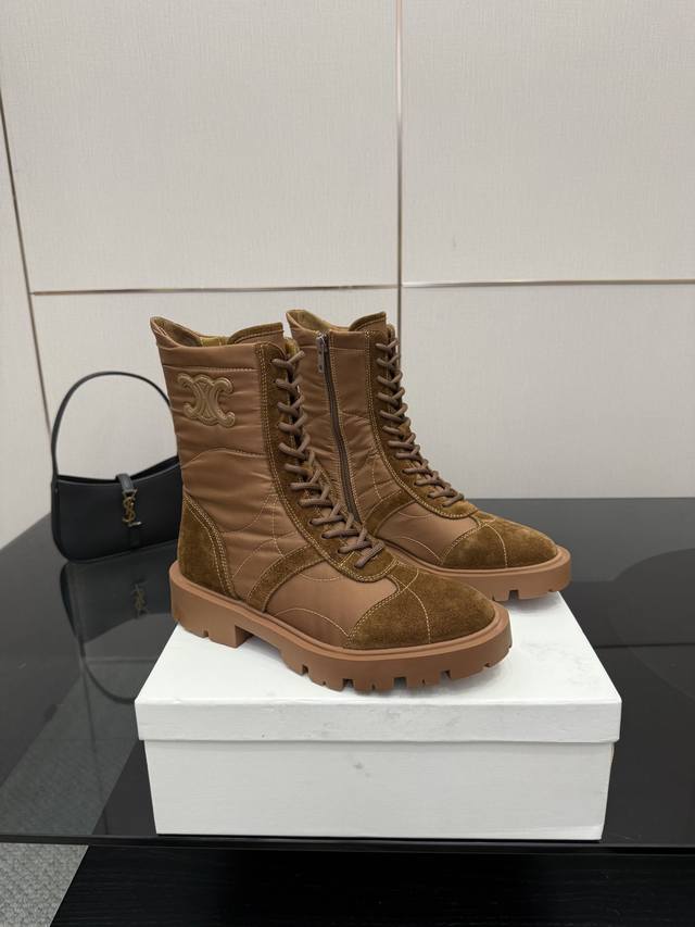 Looks like a genuine product without any issues, high-quality finish, no obviously fake or low-quality goods. Original last, adjusted countless times, retro thick-soled mid-calf Martin boots. Celine has many great styles this season, such as these military boots with a biker vibe. The boot shaft design is particularly noteworthy; it flatters all leg shapes, instantly giving you long, slimmer legs! Absolutely stunning!