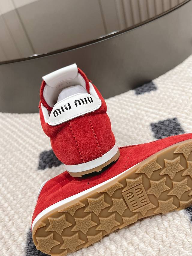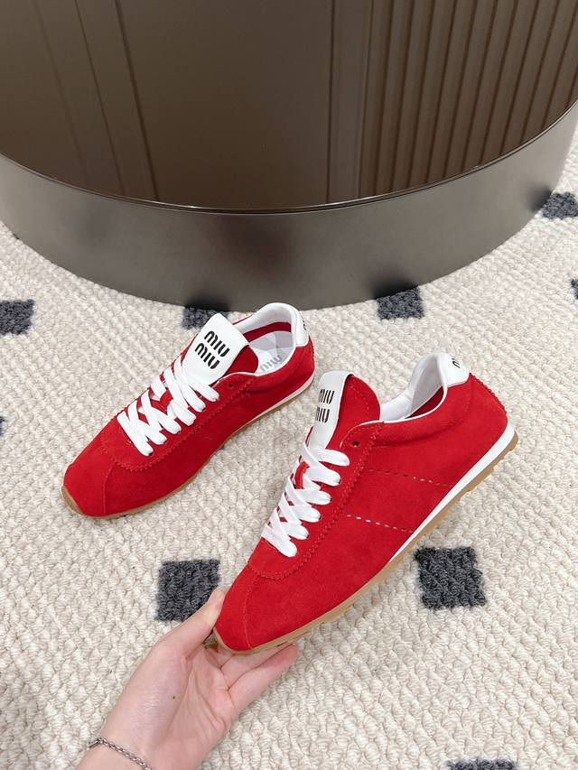Miumiu's new Forrest Gump Denim sneakers from the early spring runway. Super comfortable Denim sneakers. Miu Miu's early spring runway Denim sneakers are simple, casual, retro, and beautiful, yet they also reflect the beauty of denim. The shoe's simple and stylish design is very lightweight and versatile!
