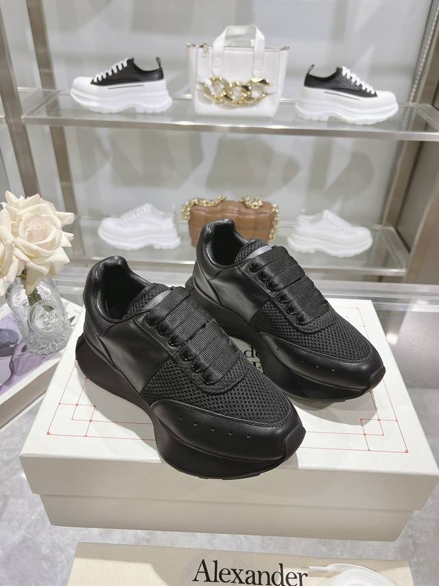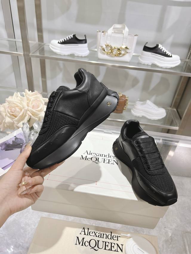 New color synced with the official website Alexander Mcqueen Spring/Summer Men's Sprint sports couple's shoes. The side is decorated with a fashionable and personalized letter Seal Logo. The full leather craftsmanship is high-end, with oiled edges, sheepskin lining and cowhide insole, which will not peel or fade. The latest exquisite full set packaging also comes with a pair of shoelaces. Women's 35-40, Men's 39-45