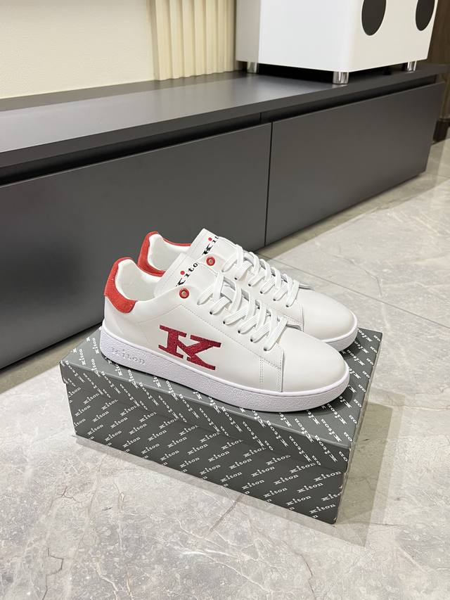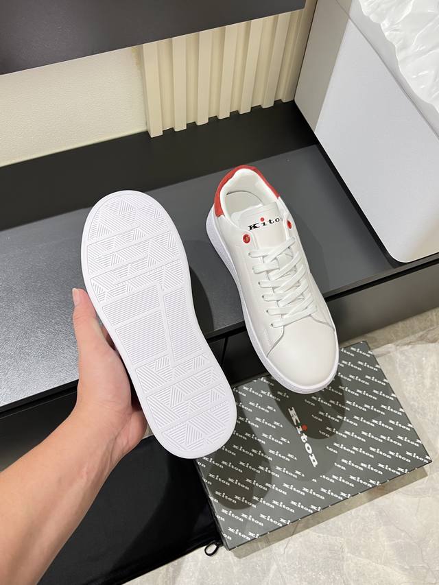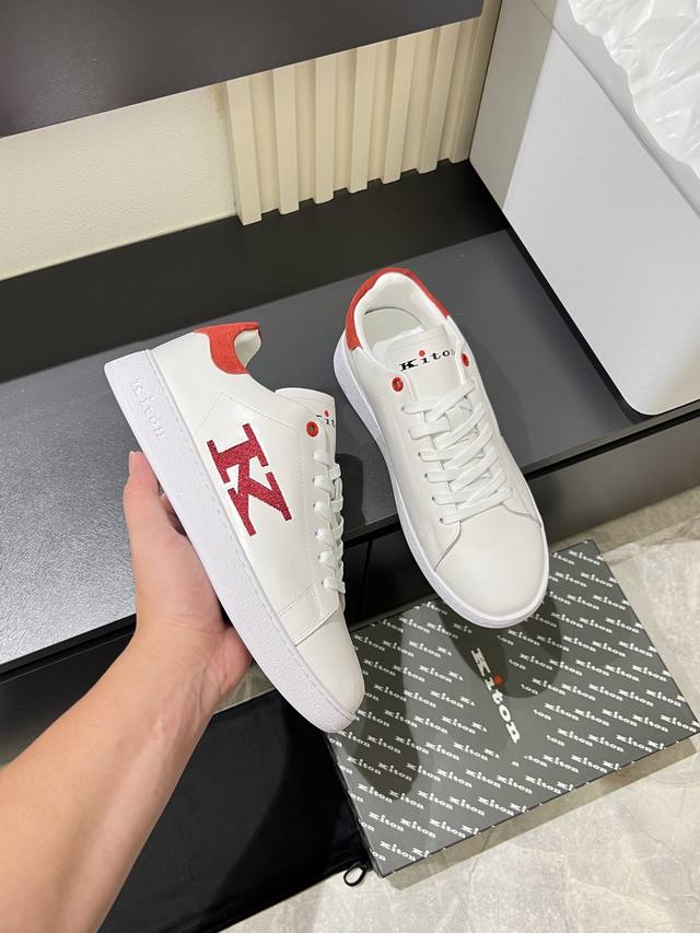 New Kiton high-end luxury men's sneakers. The upper is made of calfskin, using a one-piece molding process for comfort and breathability. Features a Kiton logo on the tongue and a 1:1 original outsole for a comfortable feel! Sizes: 38-44!