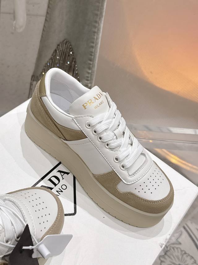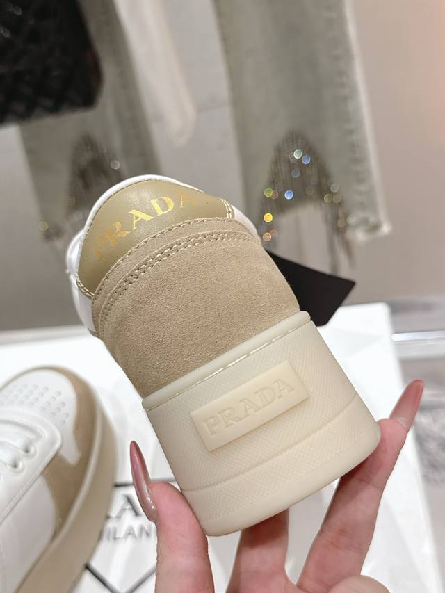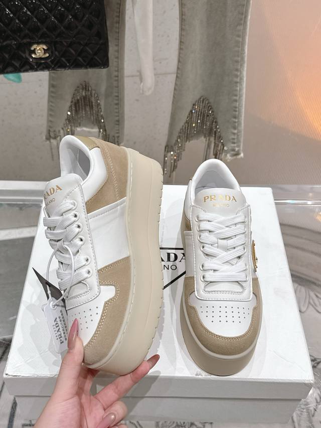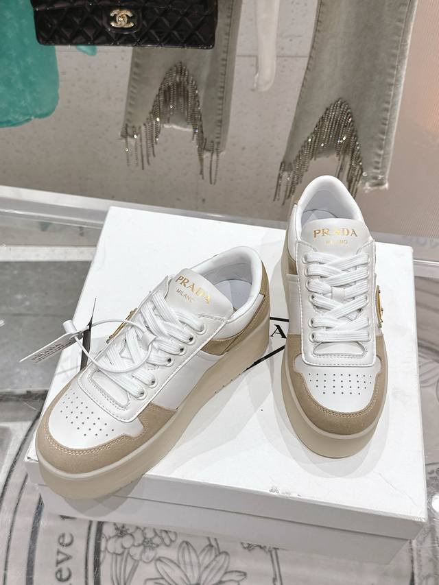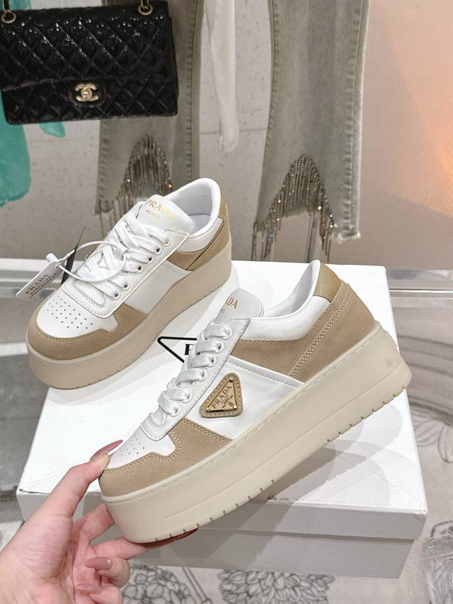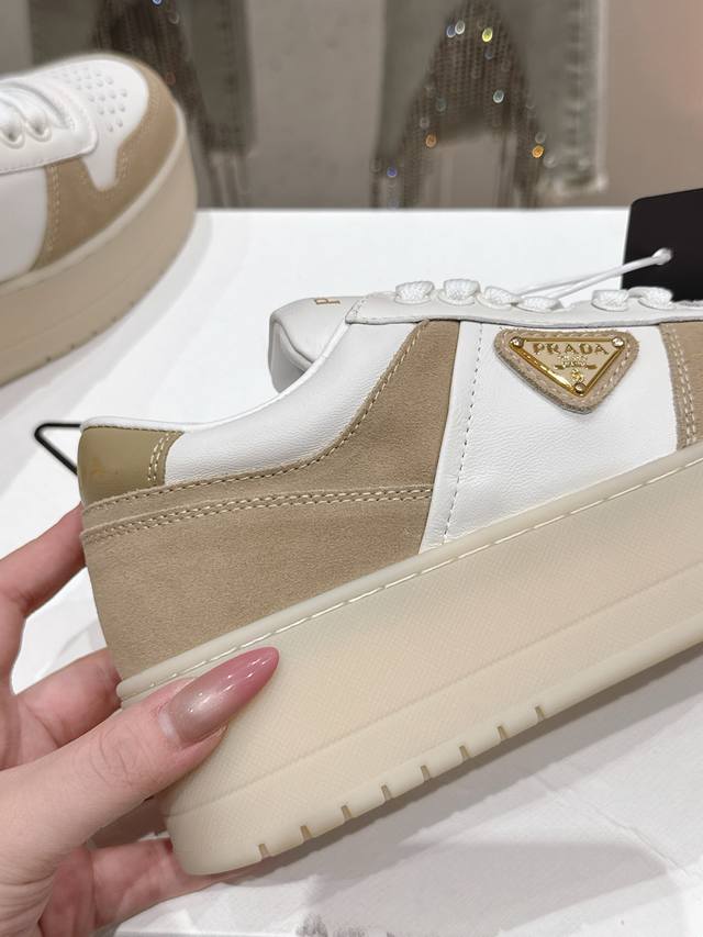 New thick-soled casual shoes with a triangle logo, developed from the original design. The shoe shape is very elegant and not flimsy. The feel is also quite comfortable. Suitable for all seasons. Outer material: cowhide leather + high-gloss suede. Inner lining: imported soft cowhide leather. TPU infused outsole: original two-tone ultra-lightweight design. Size: 35-39 [40.41 customizable].