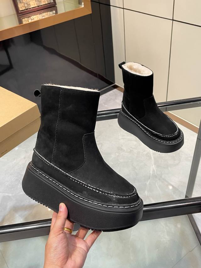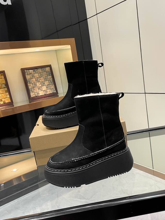 New Ugg boutique item, featuring a simple, elegant, and minimalist design. Material: Imported waterproof suede cowhide. Insole: 100% pure Australian wool. Outsole: Non-slip rubber foam. Lightweight and non-slip. Craftsmanship: Hand-stitched details. Colors: Brown, Black/Coffee, Sizes 35-40.