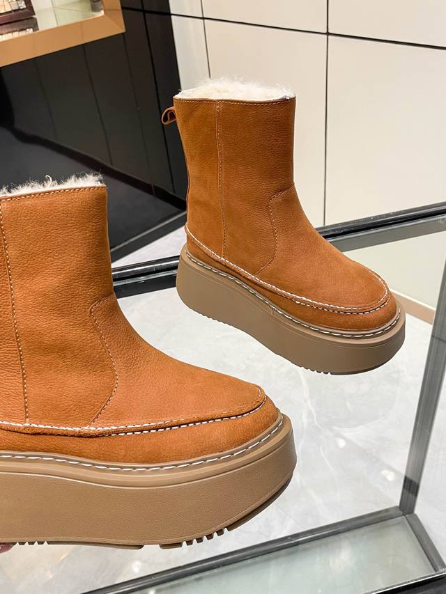 New Ugg boutique item, featuring a simple, elegant, and minimalist design. Material: Imported waterproof suede cowhide. Insole: 100% pure Australian wool. Outsole: Non-slip rubber foam. Lightweight and non-slip. Craftsmanship: Hand-stitched details. Colors: Brown, Black/Coffee, Sizes 35-40.