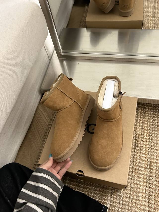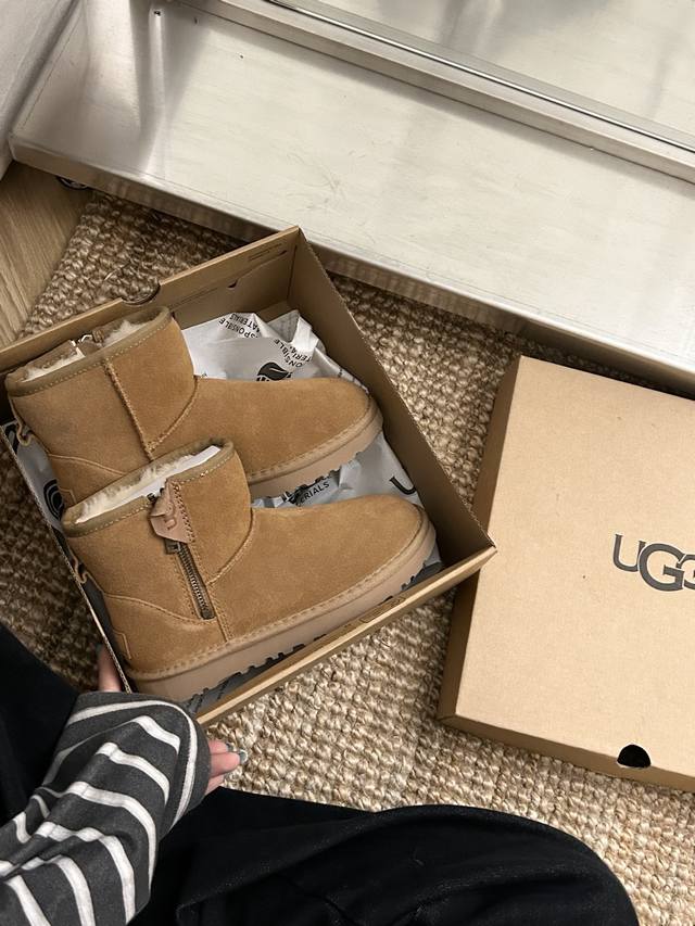 New Ugg classic slip-on shoe with zipper, style 54. Made of cowhide and wool, th