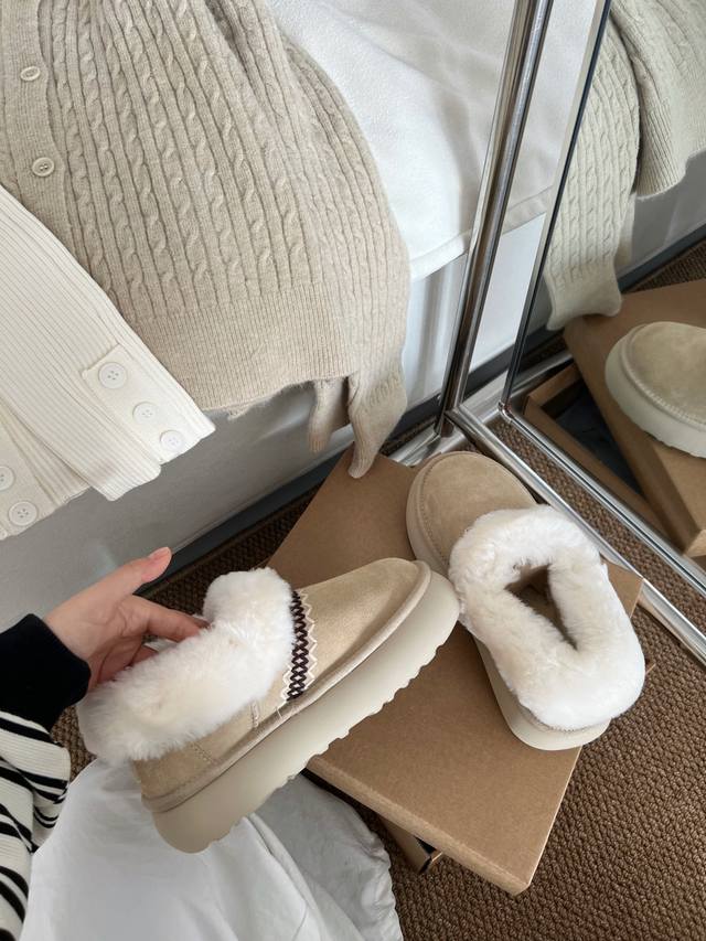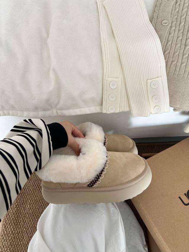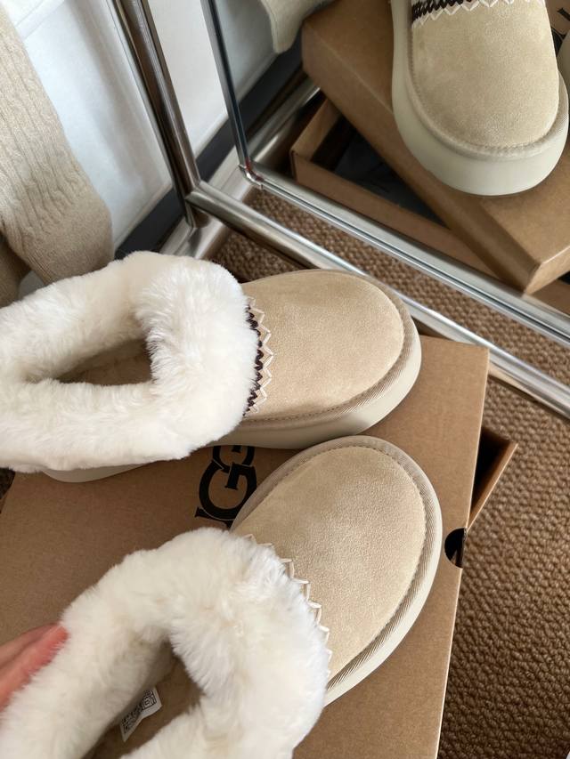 New Ugg furry slippers | Ethnic braiding + step-on heels
