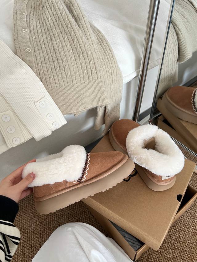 New Ugg furry slippers | Ethnic-style weaving + step-on heels