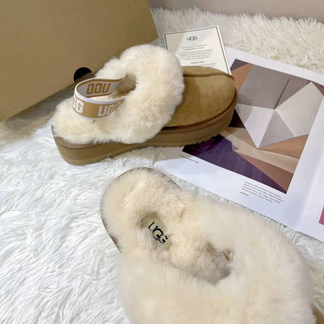 Casual classic flat comfortable home fur slippers, a favorite of celebrities and bloggers in spring and summer. ~ Eva platform sole, wool upper and insole. Colors: Gray, Black, Chestnut