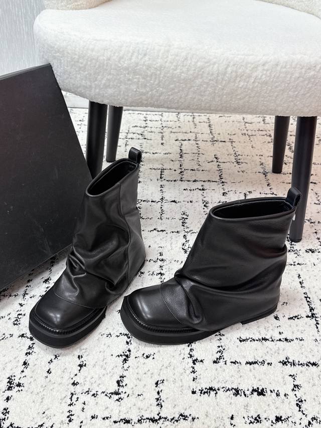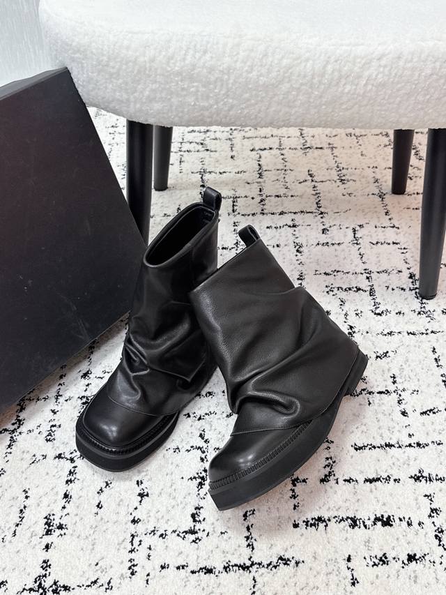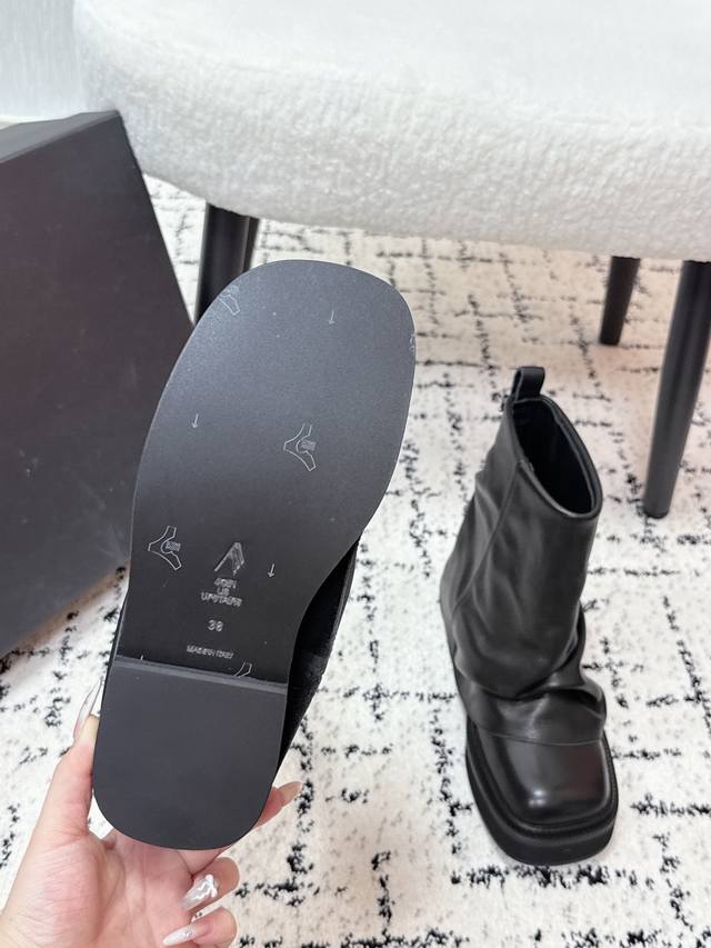 Niche streetwear brand The Attico 25 Fw Autumn/Winter New Arrival: Trendy Platform Ankle Boots - Slip-on Ankle Boots DDD presents its new iconic Robin footwear collection. DDD selects premium leather and blends street style inspiration with meticulous craftsmanship, elevating everyday sophistication. Unique pleats and metallic embellishments add a distinctive touch, while diverse styles depict the multifaceted portrait of the urban woman, allowing her to confidently strut her own course! DDD These high-quality boots are absolutely stunning and go with everything! DDD The fashion sense and quality are truly on point. I would call them a must-have for hot girls. These slouch boots make legs look longer and slimmer, and the super cool design gives you a powerful, confident aura! A visual feast of sexy, free-spirited, and minimalist style! DDD Upper: Cowhide suede DDD Lining: Water-dyed cowhide DDD Outsole: Genuine leather welt and Italian genuine leather outsole DDD Heel height: 4cm DDD Size: #35-41 Sizes 40 and 41 are custom-made and non-refundable DDD