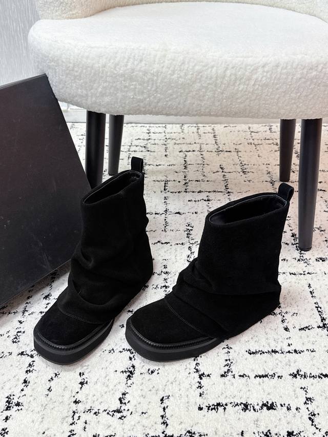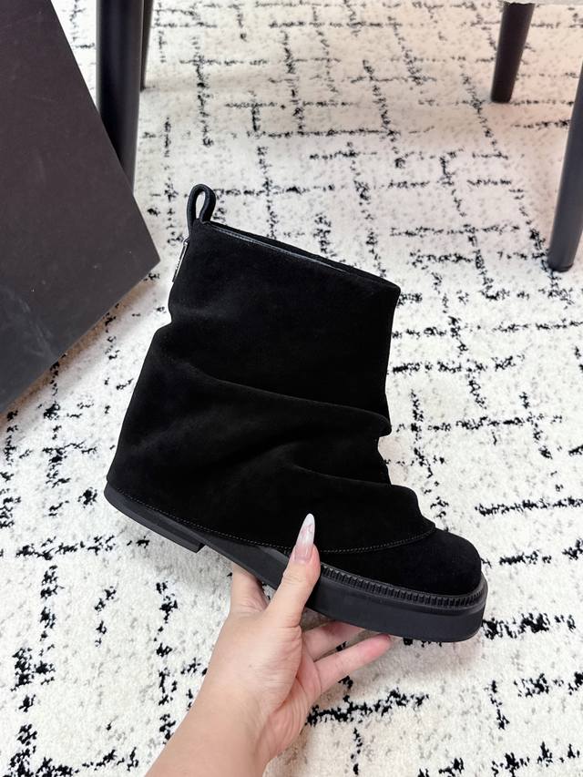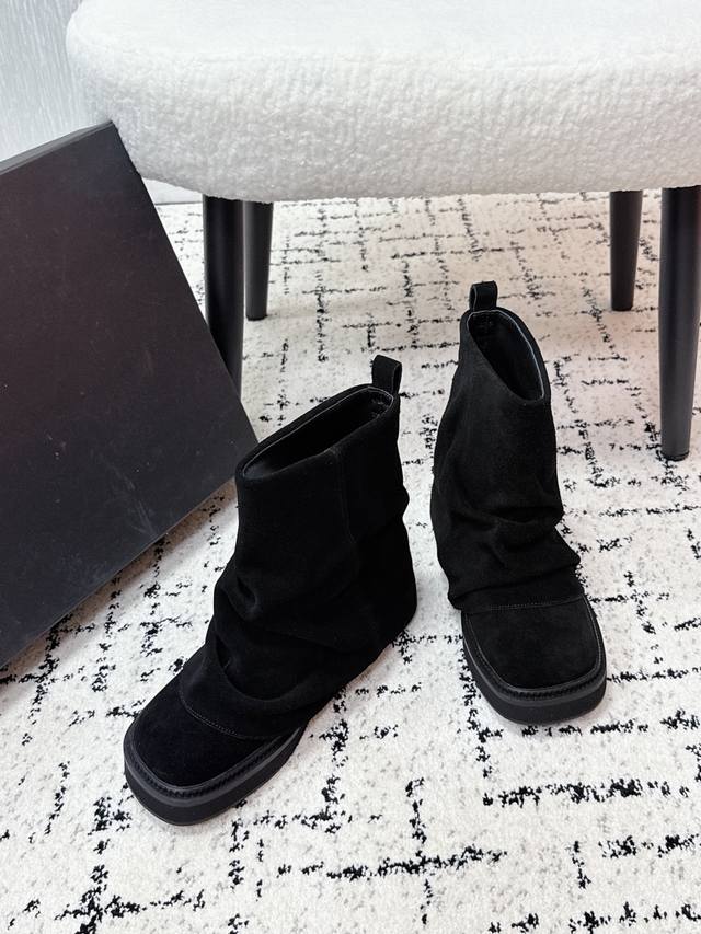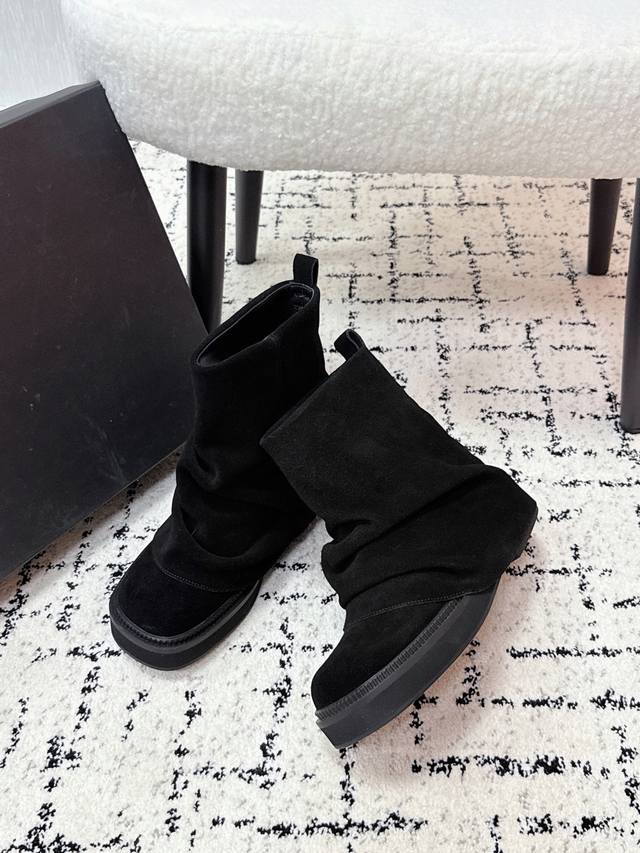 Niche streetwear brand The Attico 25 Fw Autumn/Winter New Arrival: Trendy Platform Ankle Boots - Slip-on Ankle Boots DDD presents its new iconic Robin footwear collection. DDD selects premium leather and blends street style inspiration with meticulous craftsmanship, elevating everyday sophistication. Unique pleats and metallic embellishments add a distinctive touch, while diverse styles depict the multifaceted portrait of the urban woman, allowing her to confidently strut her own course! DDD These high-quality boots are absolutely stunning and go with everything! DDD The fashion sense and quality are truly on point. I would call them a must-have for hot girls. These slouch boots make legs look longer and slimmer, and the super cool design gives you a powerful, confident aura! A visual feast of sexy, free-spirited, and minimalist style! DDD Upper: Cowhide suede DDD Lining: Water-dyed cowhide DDD Outsole: Genuine leather welt and Italian genuine leather outsole DDD Heel height: 4cm DDD Size: #35-41 Sizes 40 and 41 are custom-made and non-refundable DDD
