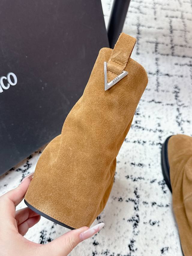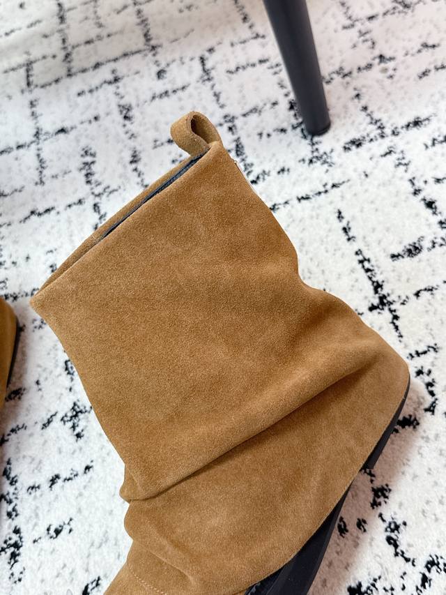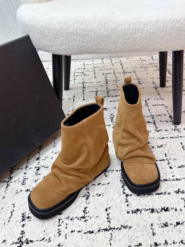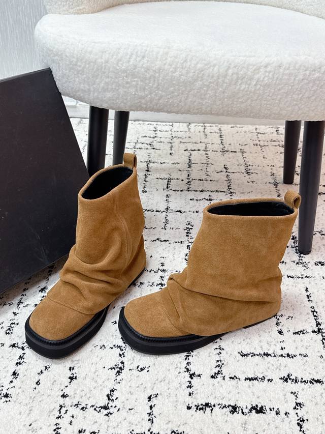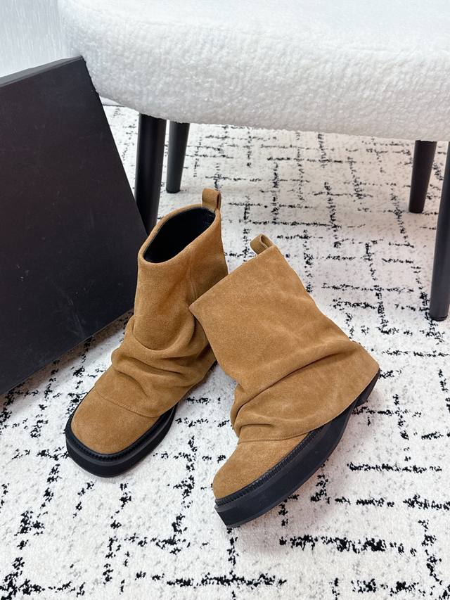 Niche streetwear brand The Attico 25 Fw Autumn/Winter New Arrival: Trendy Platform Ankle Boots - Slip-on Ankle Boots DDD. The Robin DDD collection, a new signature footwear line, is presented with a relaxed and stylish approach. Selected leathers blend streetwear inspiration with meticulous craftsmanship, elevating everyday elegance. Unique pleats and metallic embellishments add a distinctive touch. Diverse styles depict the multifaceted portrait of the urban woman, allowing her to confidently strut her own course! DDD. These boots are incredibly stylish and go with everything! The fashion sense and quality are truly on point. I would call them a must-have for any hot girl. The slouch boots make legs look longer and slimmer, and the super cool design gives you a powerful, confident aura! A visual feast of sexy, free-spirited, and minimalist chic! DDD Upper: Cowhide suede DDD Lining: Water-dyed cowhide DDD Outsole: Genuine leather welt and Italian genuine leather outsole DDD Heel height: 4cm DDD Size: #35-41 Sizes 40 and 41 are custom-made and non-refundable DDD