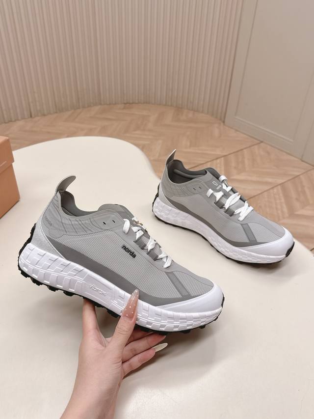 Norda outdoor sneakers for couples, designed for adventurers venturing into the wilderness and mountains. Utilizing cutting-edge technology and high-performance materials, the lightweight upper combined with powerful traction ensures stability on steep cliffs, muddy trails, or slippery streams. The DDD Vibram super-strong outsole features a biomimetic serrated pattern, making rock climbing and wading effortless. The DDD Dynamic Cushioning midsole absorbs impact, providing comfort and preventing fatigue even on long hikes. The breathable and waterproof Gore-Tex lining keeps feet dry in heavy rain and heat. The DDD Lightweight, durable, and tear-resistant upper withstands rough terrain and thorns with exceptional durability. DDD Sizes: 35-45