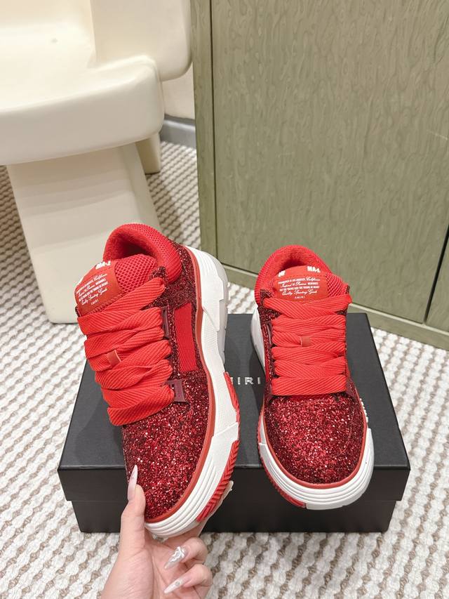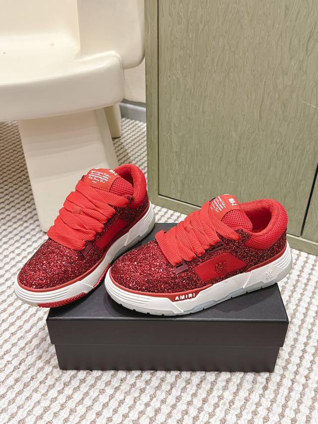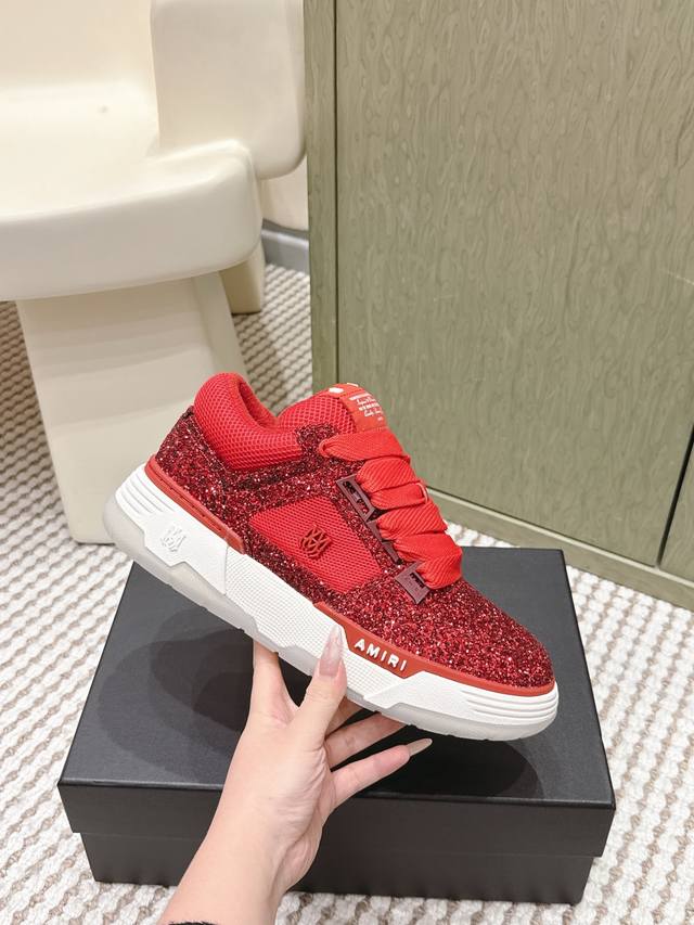 Official website packaging, top-quality import. Amiri 25 Spring/Summer new style loafers, casual sports shoes, original design. Amiri brand lettering and the "Ma" logo appear on the side of the shoe. Material: Imported cowhide. Lining: Original custom breathable lining. Outsole: Exclusive molded TPU material. Size: Women's 35-40, Men's 39-45, Women's 40, Men's 45. Custom orders are non-refundable.