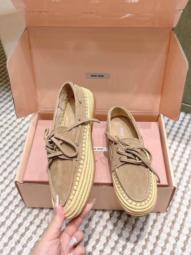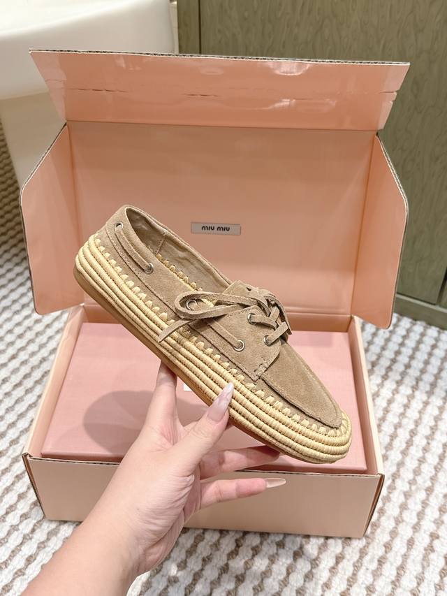 Official website synchronized box packaging DDD Miumiu 25Ss Woven rope fisherman loafers DDD Latest runway series classic upgrade, comfort and style coexist. Every color looks good, designed to match different style needs DDD Upper: Grade A high-gloss calfskin, raffia hand-woven DDD Lining: Grade A high-gloss calfskin DDD Outsole: Rubber DDD Size: 35-40 40 custom made DDD