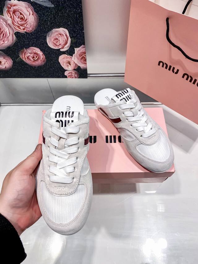 Miumiu Miu Miu Spring/Summer New Arrival Color-Block Casual Sneakers With Toe Cap And Half-Slip-On Design