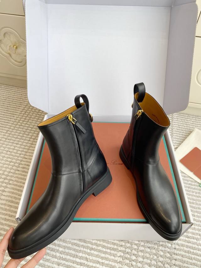 Original box packaging. Loro Pian*A Lp new Kilda ankle boots, vintage style. Classic and simple design, very versatile, side zipper and hardware embellishments, exuding a high-end feel. Made of original custom calfskin, very high-quality, full leather lining, soft and comfortable! Size 80-40 (40 is custom-made and non-refundable).