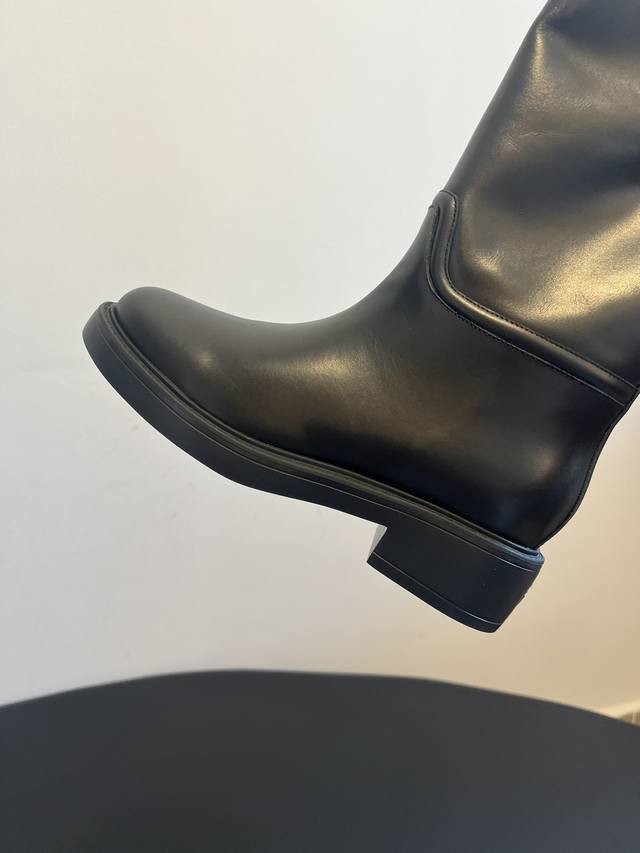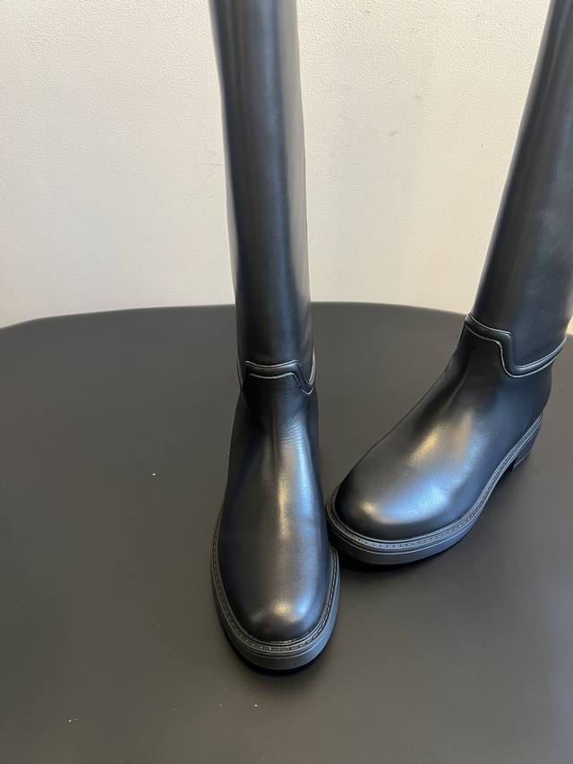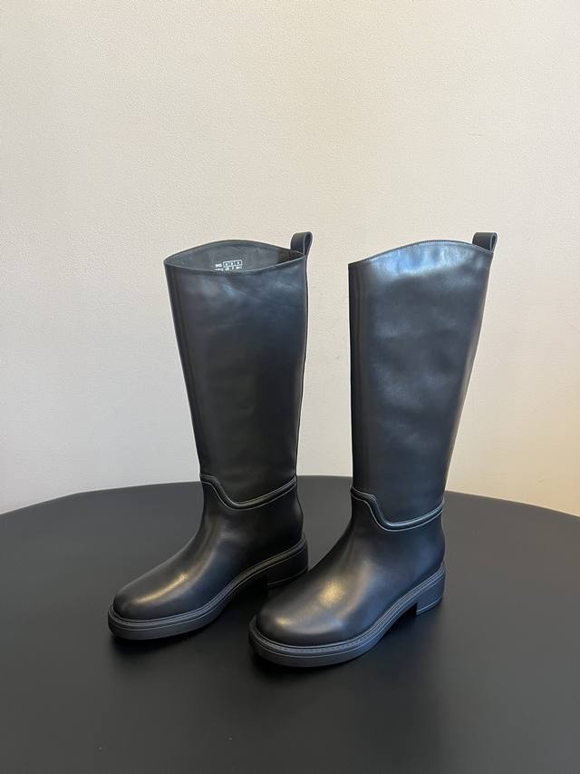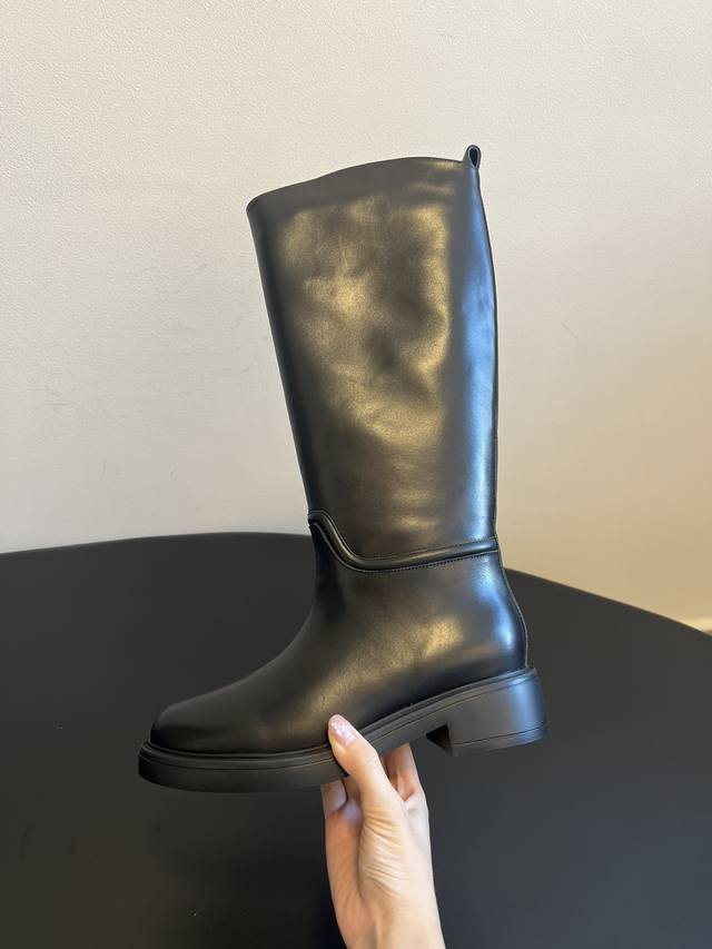 Original Factory Grade Stuartweitzma* Sw5050 Round Toe Tall Riding Boots. Made of smooth leather, these boots have a delicate texture and a glossy finish. Available in classic dark brown and black, they are versatile and exude quality. The round toe design conforms to the foot's contours, providing comfortable wear and making the foot appear more rounded. The low, chunky heel adds a touch of stability while ensuring comfort. Unique details on the boot shaft enhance the shoe's distinctiveness. Material: Cowhide Lining : Sheepskin Outsole : Ip foam sole Size: 35-40 Size 40 (Custom sizes are non-refundable/non-exchangeable)