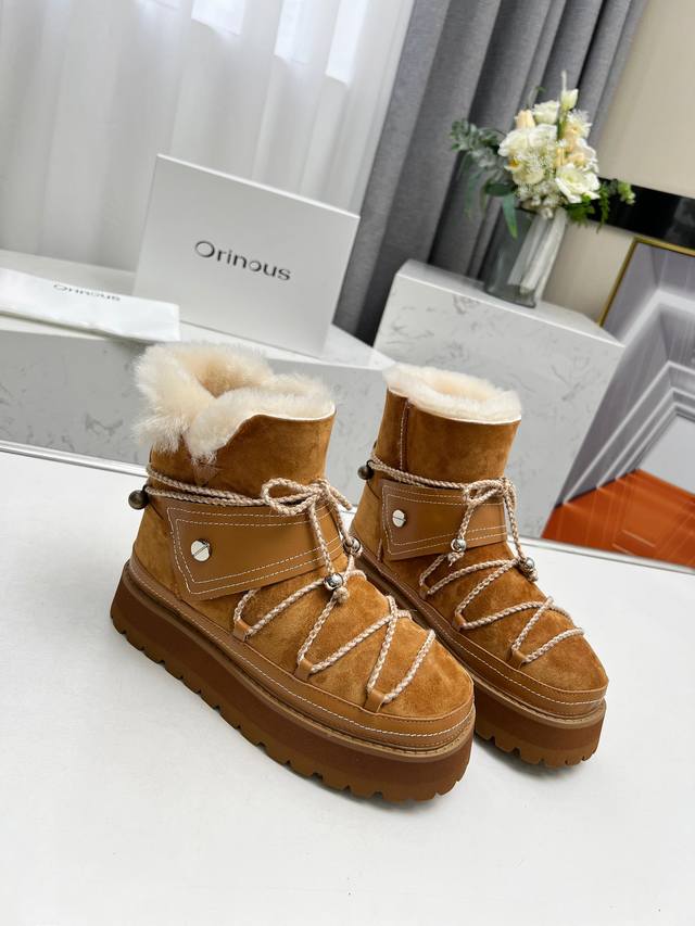 Orinous Factory Price Exclusive Hot Item: A must-have for winter! These stylish and functional furry boots are warm and comfortable, with a suede upper and full wool lining. Wool insoles provide warmth in winter. Original molded old metal bells. 4cm thick sole. Sizes 35-39.