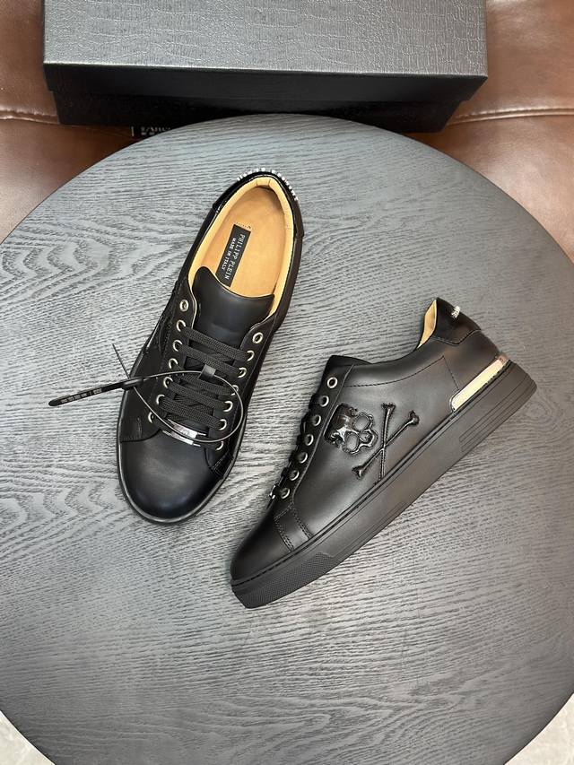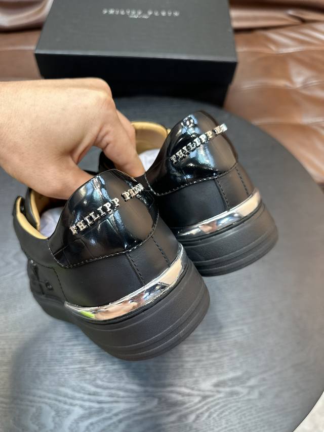 Philip Plein top-quality originals in stock! German PP trendy men's shoes, featuring metallic elements, exuding the charm of punk fashion! A stylish, minimalist style