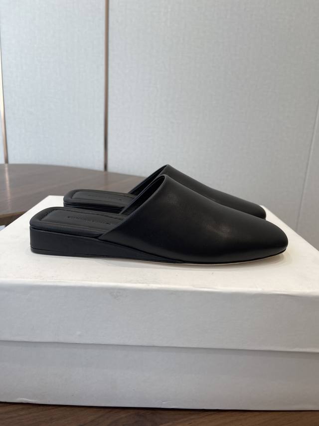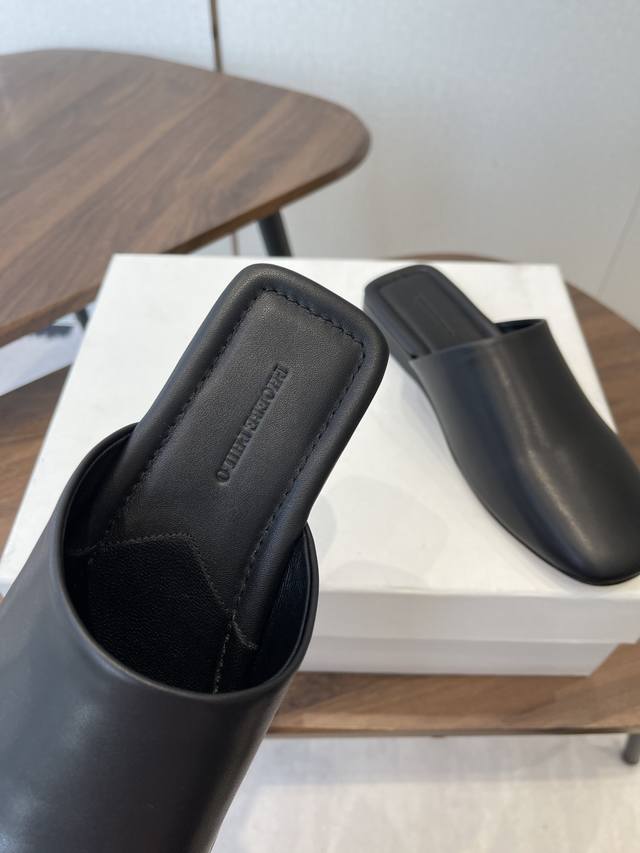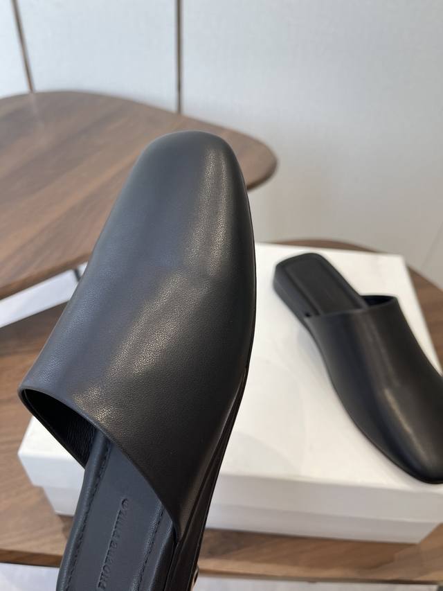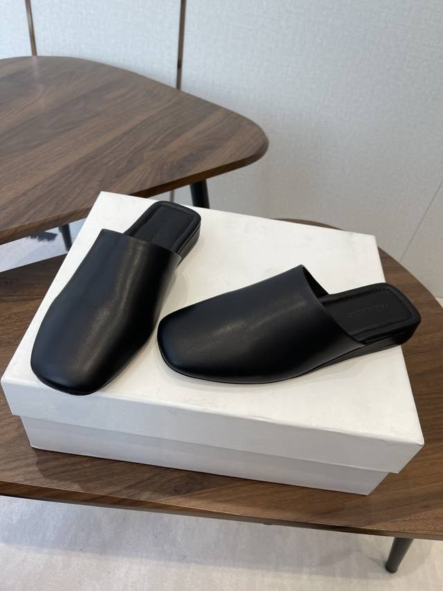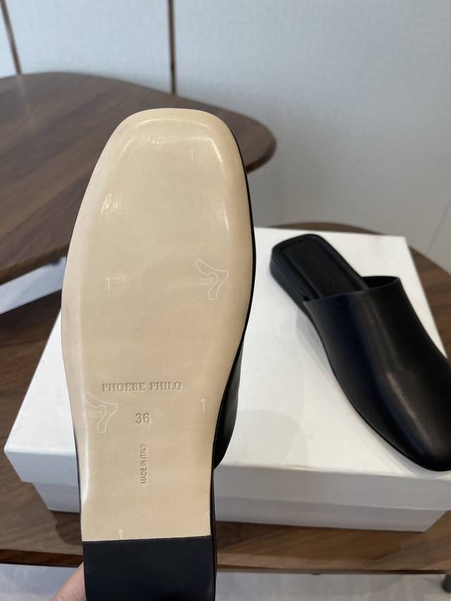 Phoebe Philo Low-Heeled Mule Slip-Ons DDD These mule slip-on shoes feature a backless design with a rounded square toe and simple, flowing lines. They are a relaxed and casual flat mule style, fitting the foot snugly and allowing for free movement. DDD The upper is made of fine leather, soft to the touch, with a matte, high-end feel. Available in black for a sophisticated look and off-white for a fresh feel, the leather offers good breathability and durability. The minimalist solid color design is versatile and suits various styles. The stitching details at the opening add a touch of sophistication, and the flat sole ensures everyday comfort. DDD Upper: Cowhide Ddd Lining: Sheepskin Ddd Outsole: Genuine Leather Ddd Heel Height: 2cm Ddd Size: 35-40, Size 40 (custom sizes, no returns or exchanges) DDD