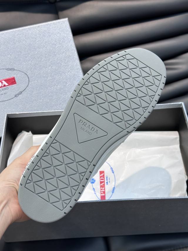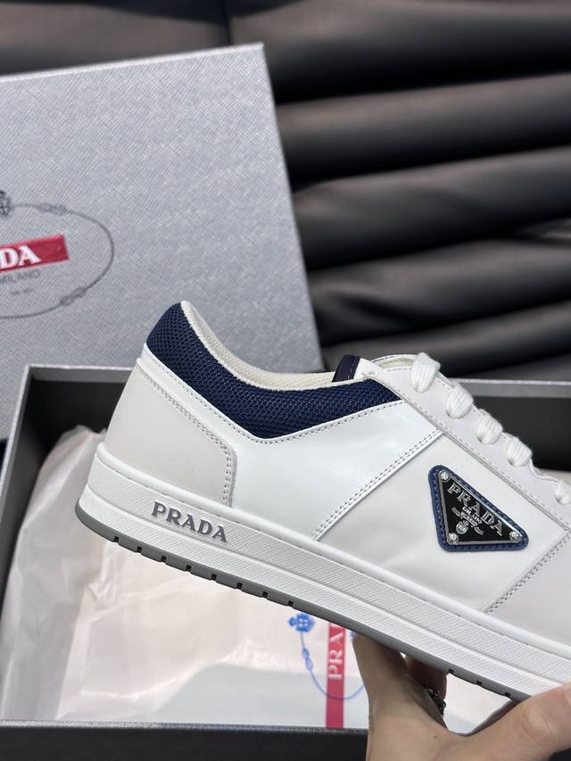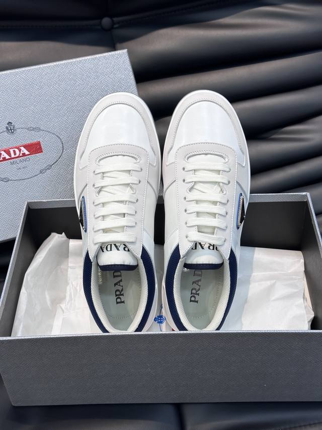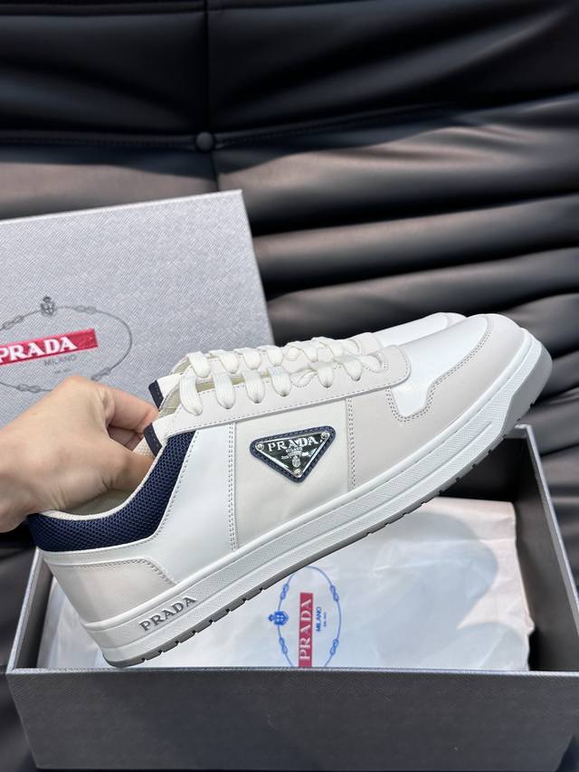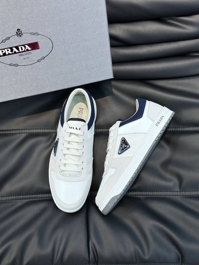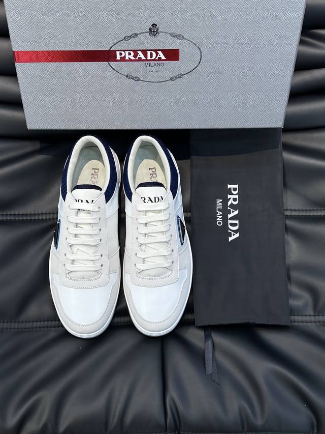 prad* New men's lace-up leather casual sneakers, made with top-grain cowhide and breathable canvas, very high-quality, heavily crafted, with a triangular brand logo adorning the shoe body, top-grain sheepskin lining, non-slip and shock-absorbing patterned lightweight thick sole. They look even better in person and on foot! Size: 38-44